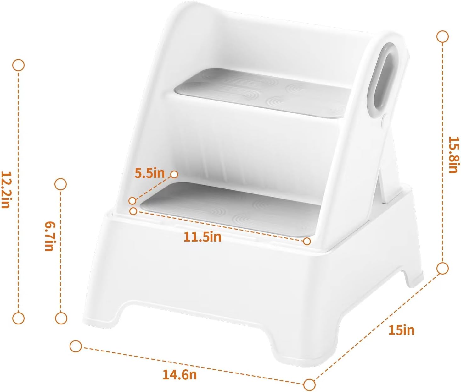 - 【Stable, Anti-slip,Eco-friendly】The well-designed "A" type stable structure、 this step stool in the top layer with a raised guardrail, to prevent stepping on the accident; at the same time, the pedal standing area of 11.5x5.5 inches per layer, effectively prevent the pedal area caused by small backflip fall; climbing ladder in each use of the bottom surface is equipped with a non-slip strip, to ensure that the normal use of the bathroom or wet floor、Our toddler helper stools are made of non-toxic PP, durable and BPA free.