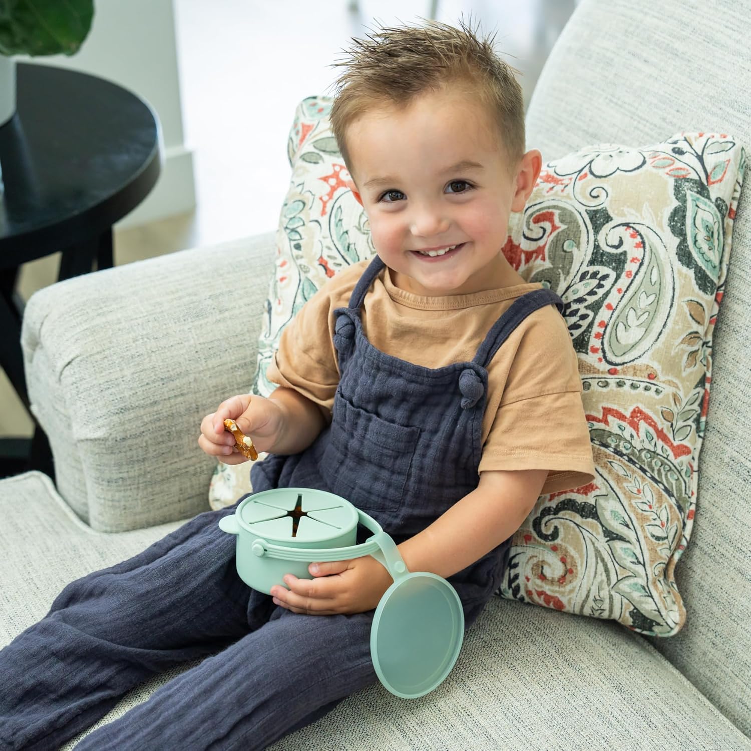 - Munch on the Move with Ease: Our 4.2” silicone snack cup promises easy handling and effortless on-the-move munching; The petal-like opening on these baby snack cups welcomes those little fingers, making snacking a breeze every time