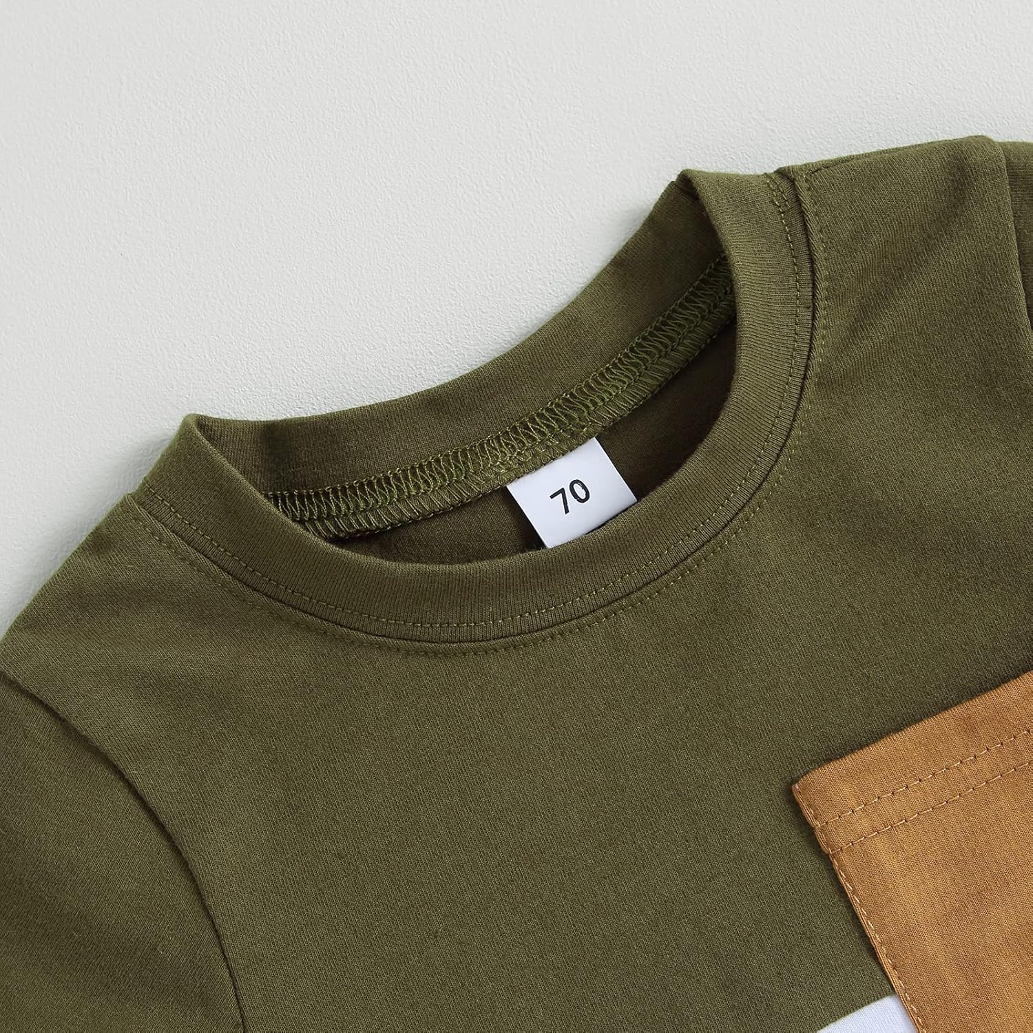 - Relax Crew Neck, One Pocket Front, Striped Pattern, Comfy Short Sleeve T Shirts Tee Tops, Elastic Waist with Drawstring Shorts, Side Pockets, Comfy and Cute Newborn Baby Boys Summer Outfits Clothes