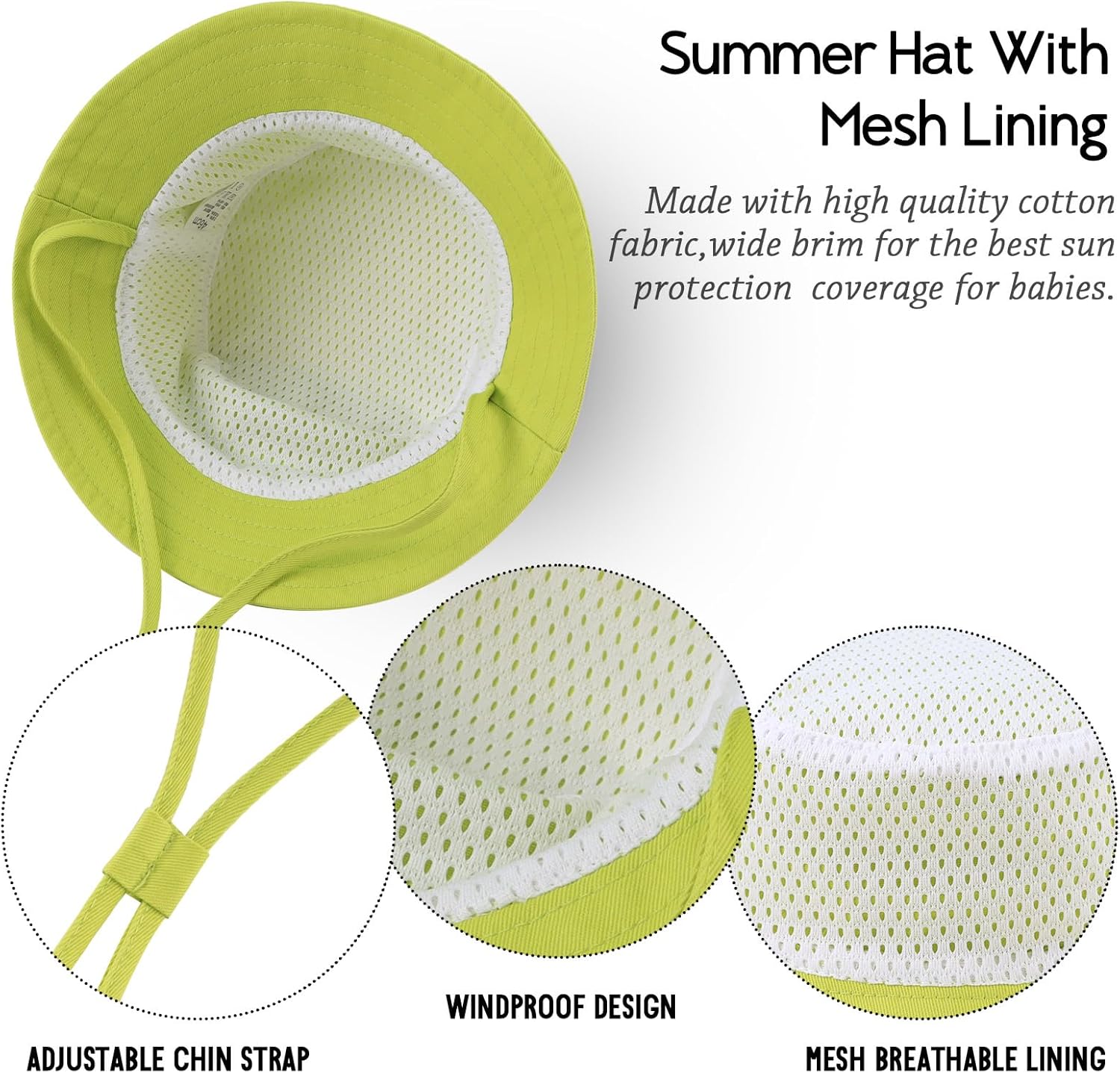 • MATERIAL: The cute baby sun hat made of 100% cotton the exterior and polyester mesh lining . The tailored design ensures that it is breathable and comfortable, and also providing an ideal environment for our cherished babies to grow. It is recommended to use a mild, neutral detergent and wash it gently with cold water, preferably by hand.