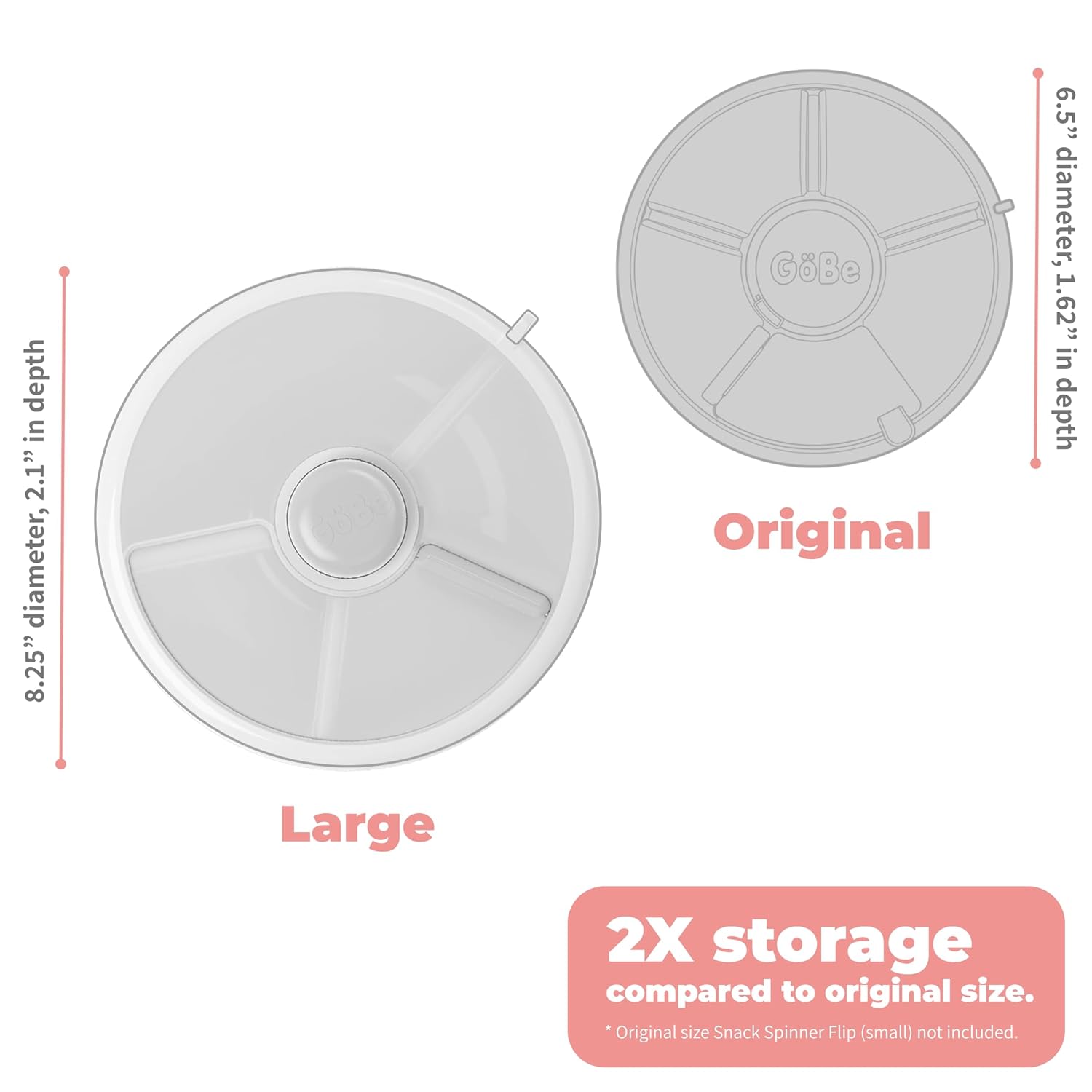 - SNACK. SPIN. REPEAT - Make snacking a breeze with 4 snacking compartments, complete with a double-wide compartment so you can fit more (including half a sandwich). Combine your snack bowls and cups into one lightweight, easy to use container! (Recommended for ages 3-10).