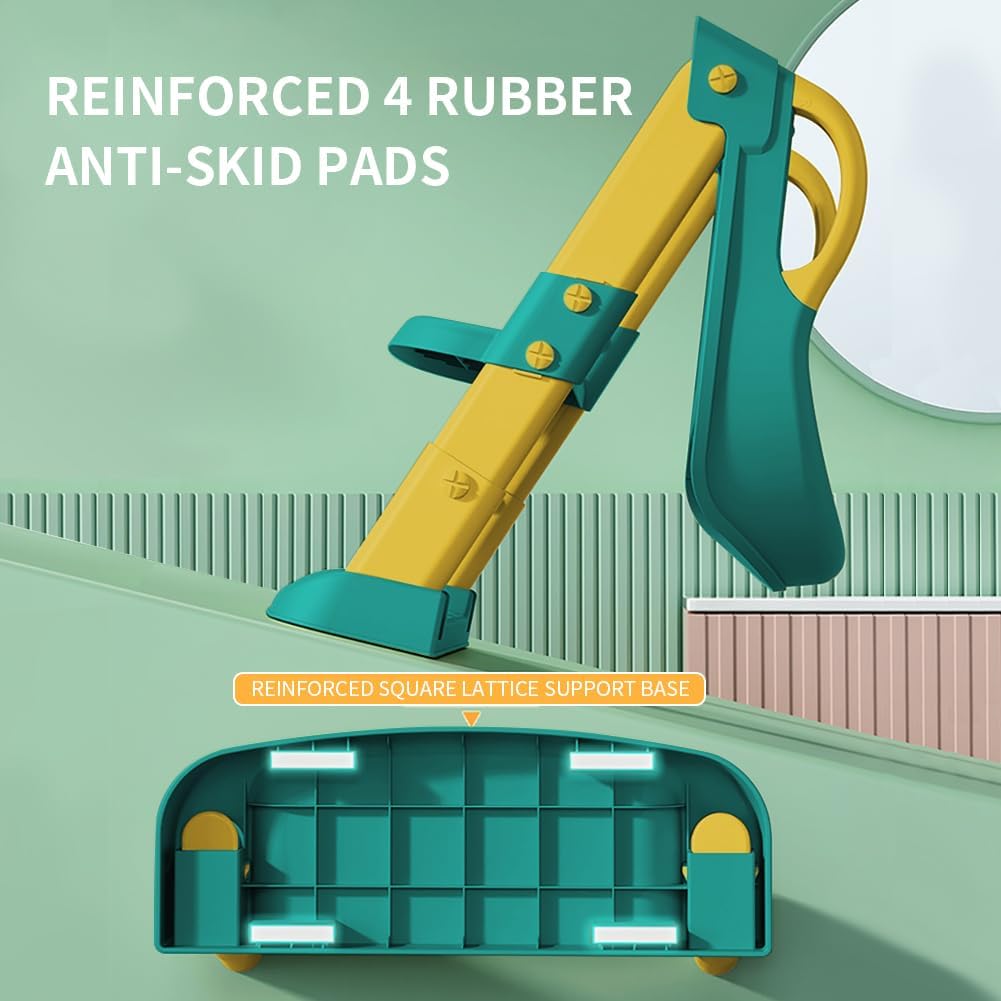 - ANTI-SLIP DESIGN: Reinforced 4 rubber anti-skid pads and enlarged 3d non-slip pedal make potty training toilet seat very stable on the toilet, baby can turn around more flexibly, and the handle of the potty training seat makes you worry-free even when your child is using it alone.