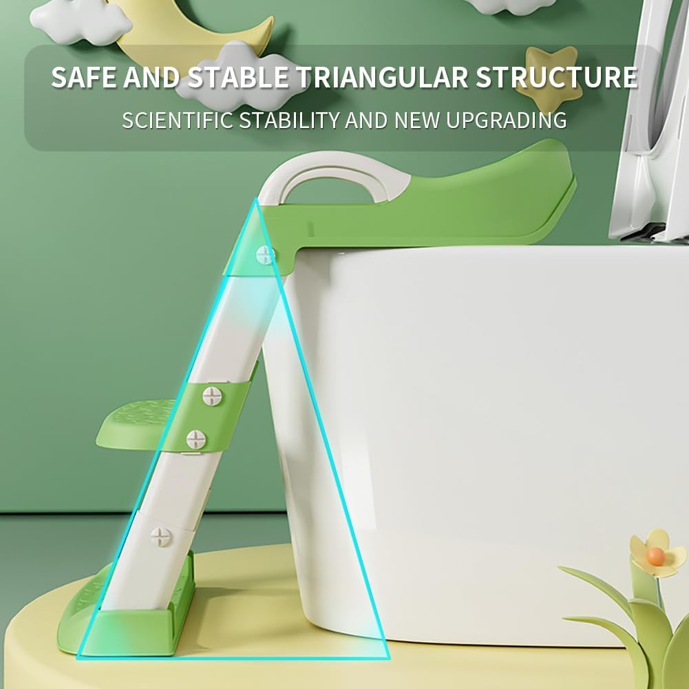 - STRONG AND STABLE: Baby's safety is our first priority, our potty seat adopts a unique triangular stable design with non-toxic and safe high-quality PP material, which can withstand up to 165 pounds! The triangular sides of toddler toilet seat with step stool also provide maximum support for children to climb.