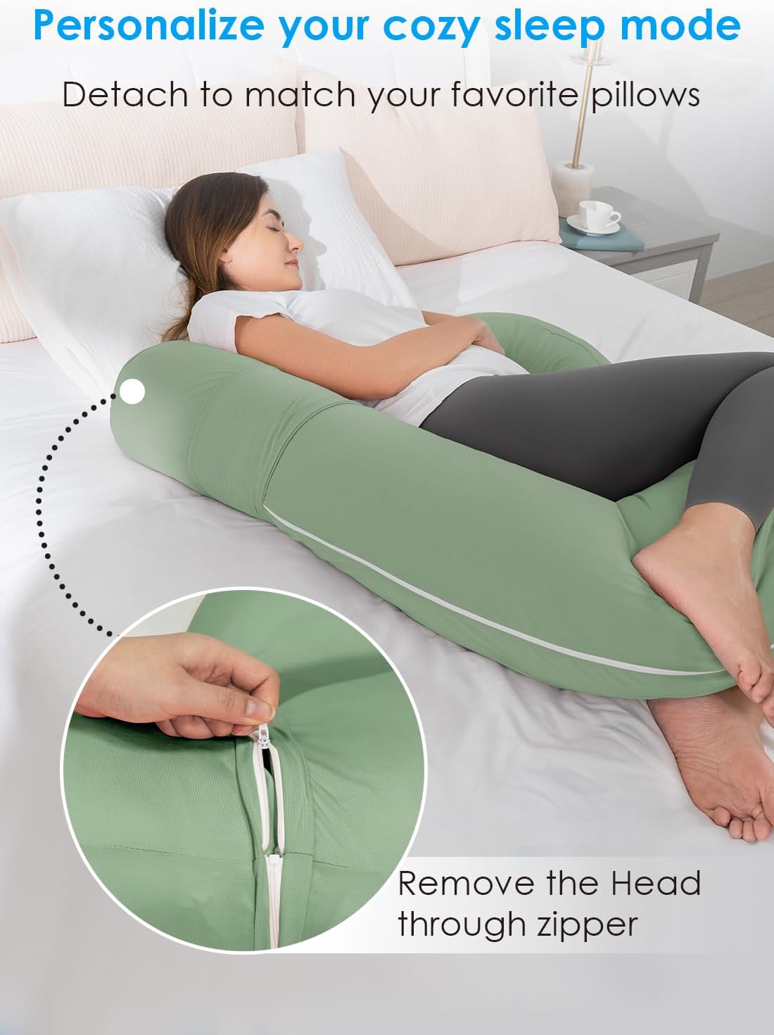 QUEEN ROSE Cooling E Shaped Pregnancy Pillows, Detachable Body Pillow for Sleeping, with Pregnancy Wedge Pillow for Belly Support, Cooling Rayon Cover,Green