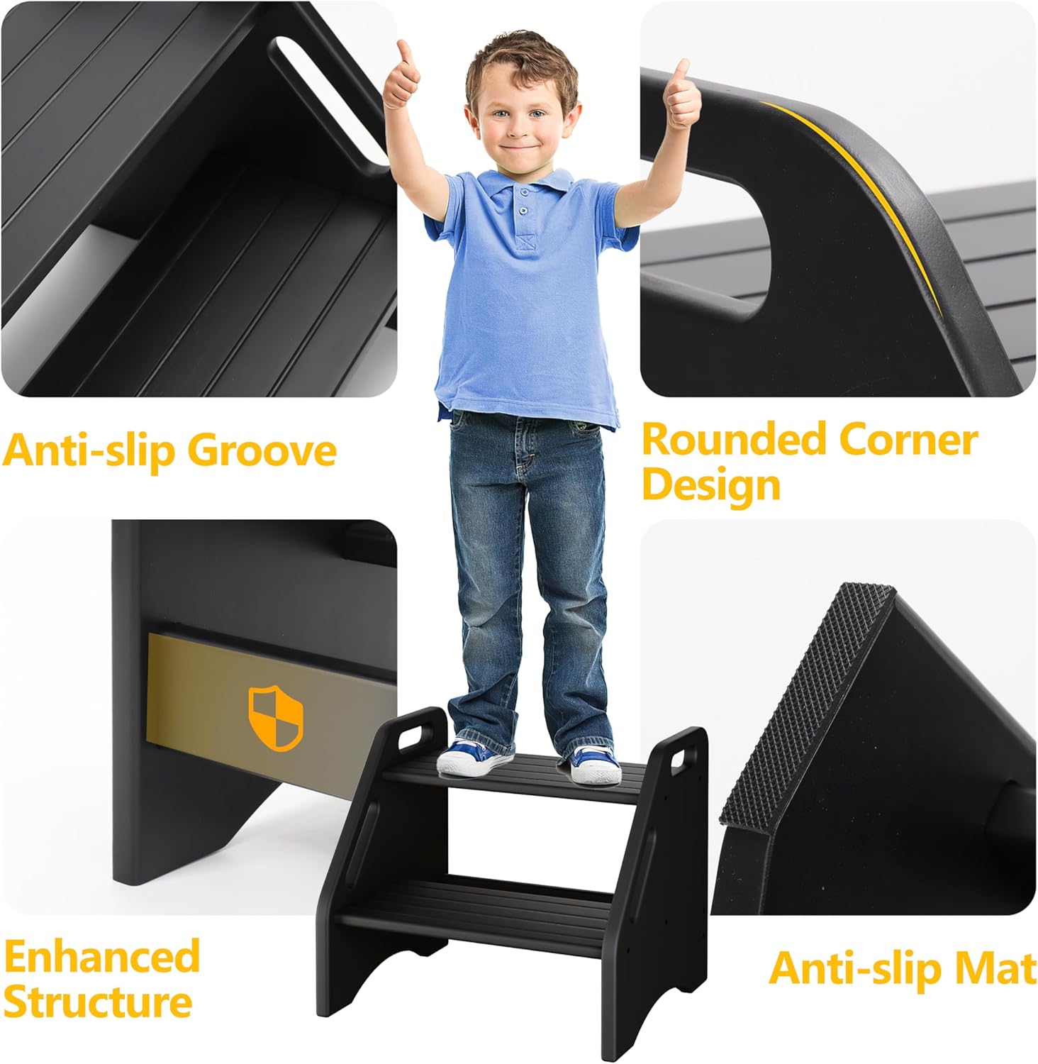 - PROVIDE SAFETY AND CONVENIENCE FOR KIDS: The top of AMBIRD step stool for kids adds a unique non-slip strip design that allows children to stand more stable on top of the step stool with handle to ensure that children do not slip; Also increased the side armrests to help children more easily on the potty step stool; This makes the two step stool more stable and convenient