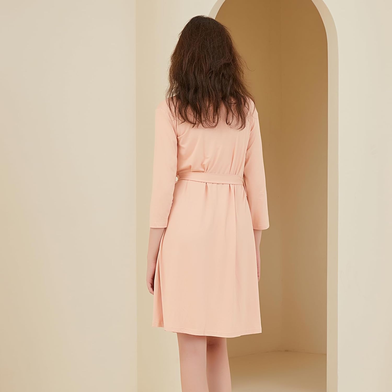 Galabloomer Maternity Robe and Baby Receiving Blanket, Matching Mommy Labor Delivery Robe and Swaddle Set (m, pink sand)