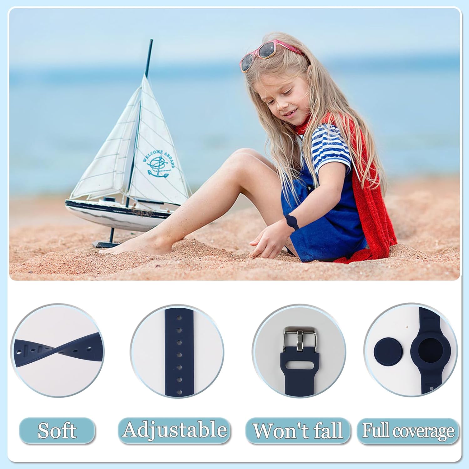 - Waterproof Design: The airtag bracelet for kids is specially designed for Apple Airtag. There is a silicone waterproof plug on the back of the AirTag wristband, which can better wrap the AirTag completely. Great for outdoor activities like the beach, children's playground, and more. (Note: It can be used for waterproofing in daily life, please do not soak in water for a long time)
