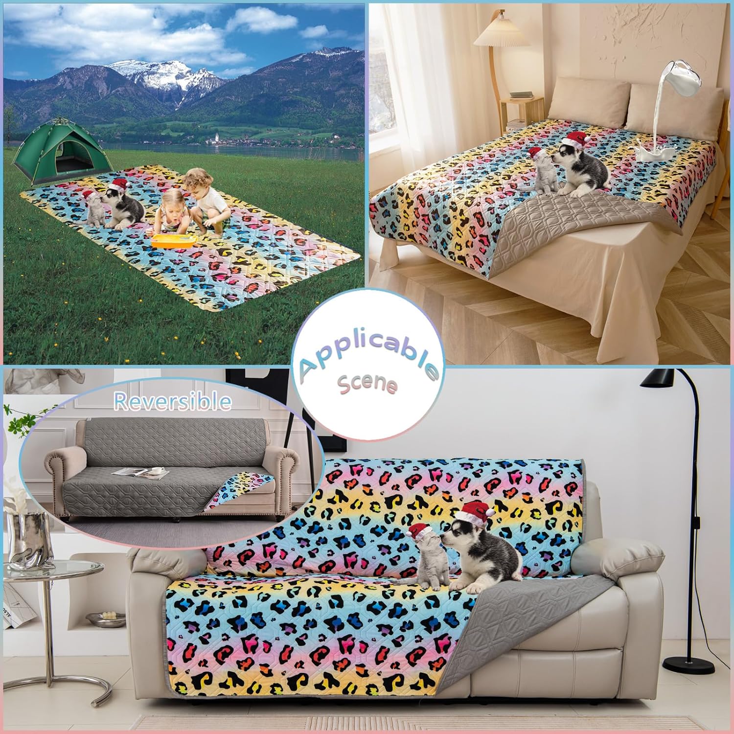 - Rainbow Leopard Printed Pet Bed Covers: Reversible, Waterproof & Oil-proof, Lint-free & Non-stick Wool, Care for Children & Babies, doesn't Fade after Washing; The Original Aesthetic Design of Embroidery + Printing + Color Matching + Hemming: Multiple Craftsmanship will Give You a Variety of Luxurious Artistic Experiences.