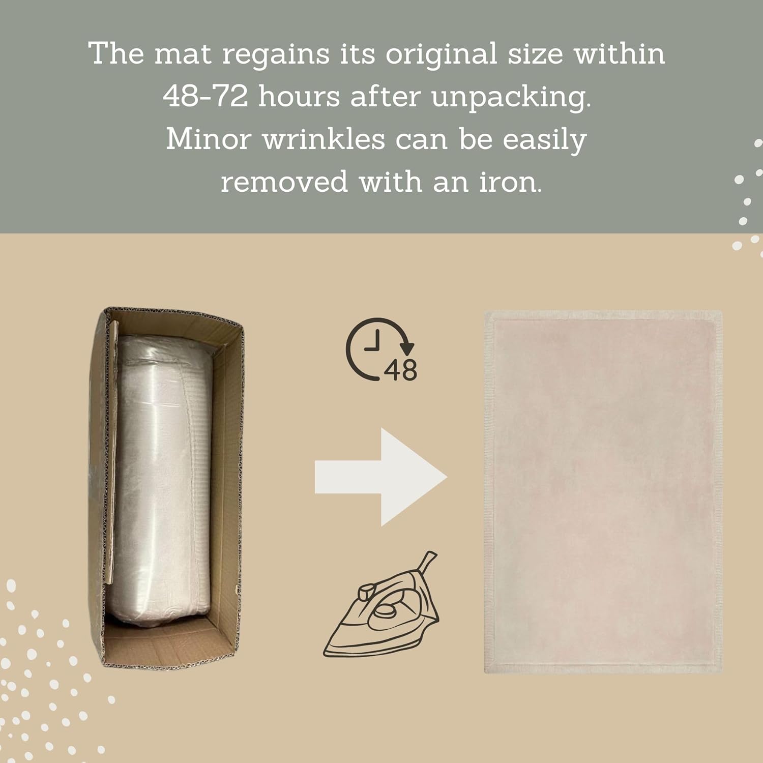- Premium high-density memory foam is 1 Inch thick and recovers its size faster (within 3-4 days) compared to cheaper alternatives. The large and thick floor mat for baby arrives blanket-folded and does not require ironing the wrinkles, unlike vacuum-packaged rugs. Compressed packaging saves space during transportation reducing carbon emissions.