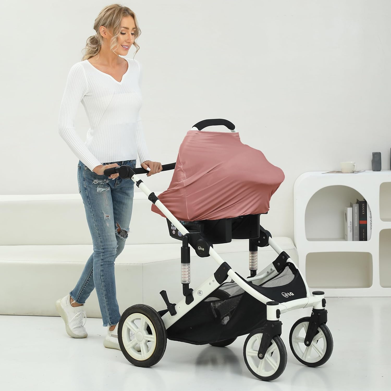 Breathable Car Seat Cover for Babies – Multi-Purpose Soft Rayon Nursing Cover for Breastfeeding, High Stretchy Infant Carseat Canopy, Stroller Cover (Smooth Rayon, Blush)