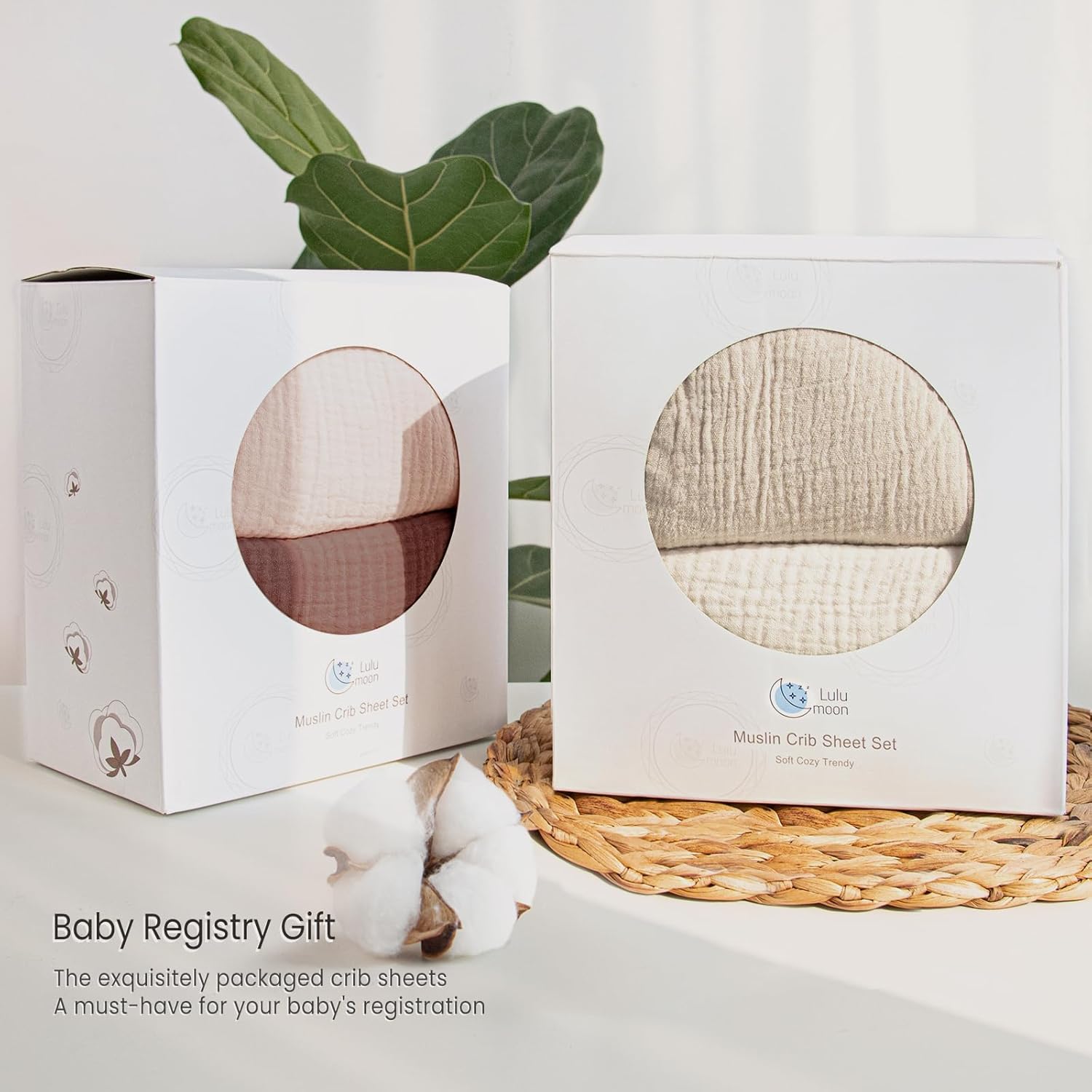 lulumoon Baby Muslin Crib Sheets - Toddler Cotton Fitted Crib Sheets Neutral for Boys and Girls 2Pack