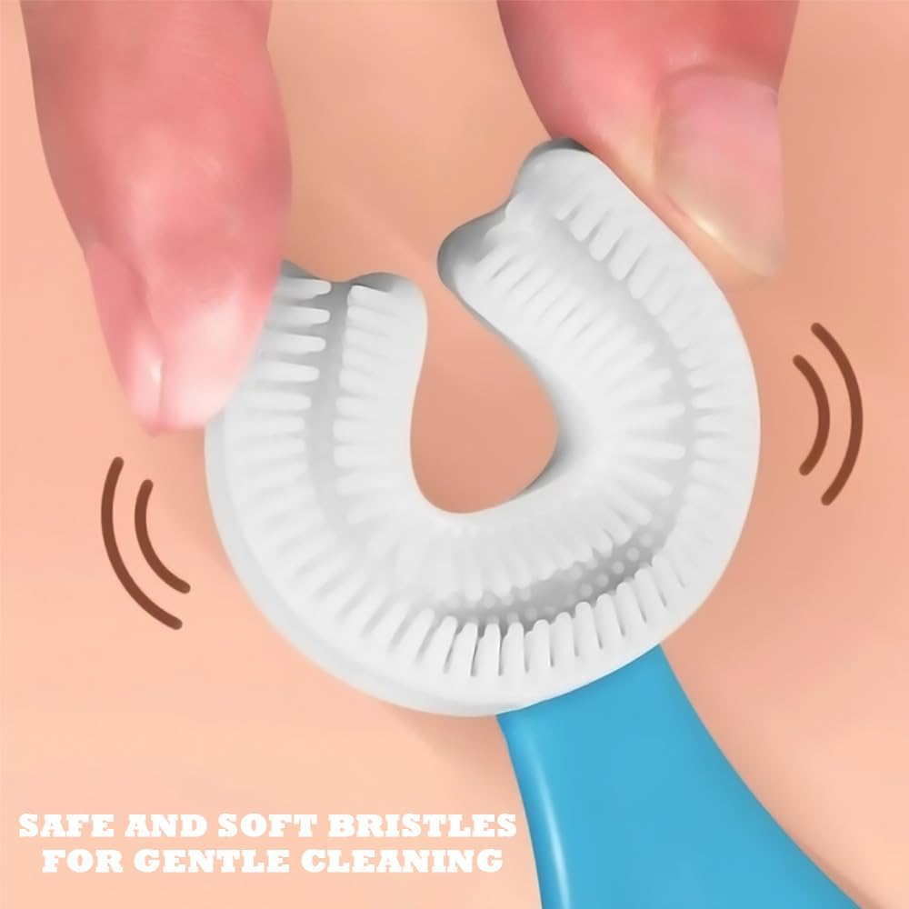 - U-SHAPED DESIGN FOR 360° ORAL CLEANING: The U-shaped design of our children's toothbrush ensures thorough cleaning from all angles, effectively reaching the back teeth and gums. It turns brushing into a game, makes teeth cleaning more enjoyable for children and helps them develop a healthy oral hygiene routine.