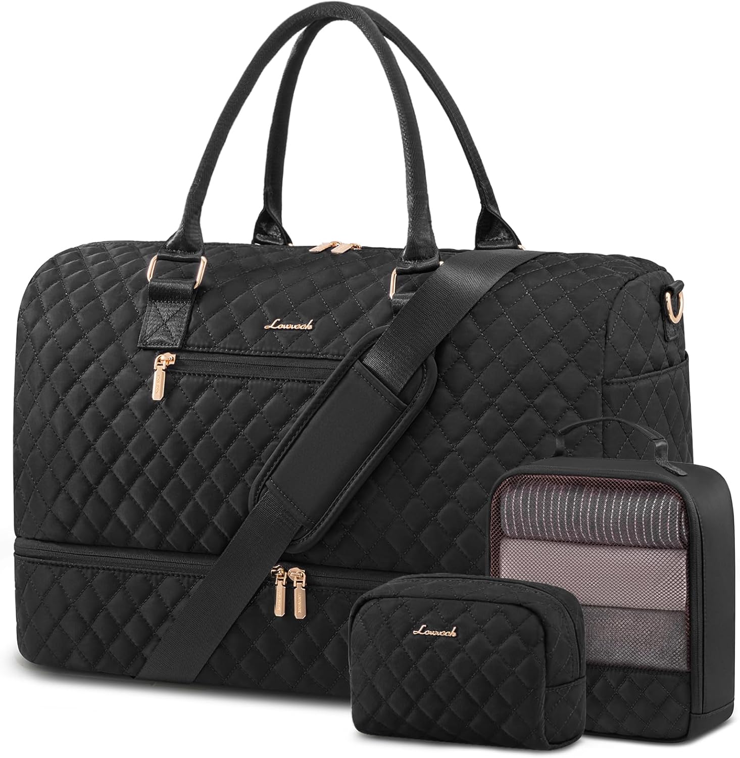 LOVEVOOK Travel Duffle Bag for Women, Weekender Overnight Bag with Shoe Compartment, Carry on Bag with Toiletry Bag, Gym Duffel Bag with Wet Pocket, Hospital Bags for Labor and Delivery 3 Pcs Set