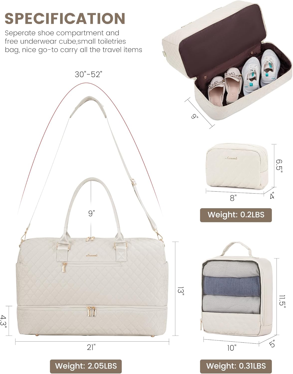 LOVEVOOK Travel Duffle Bag for Women, Weekender Overnight Bag with Shoe Compartment, Carry on Bag with Toiletry Bag, Gym Duffel Bag with Wet Pocket, Hospital Bags for Labor and Delivery 3 Pcs Set