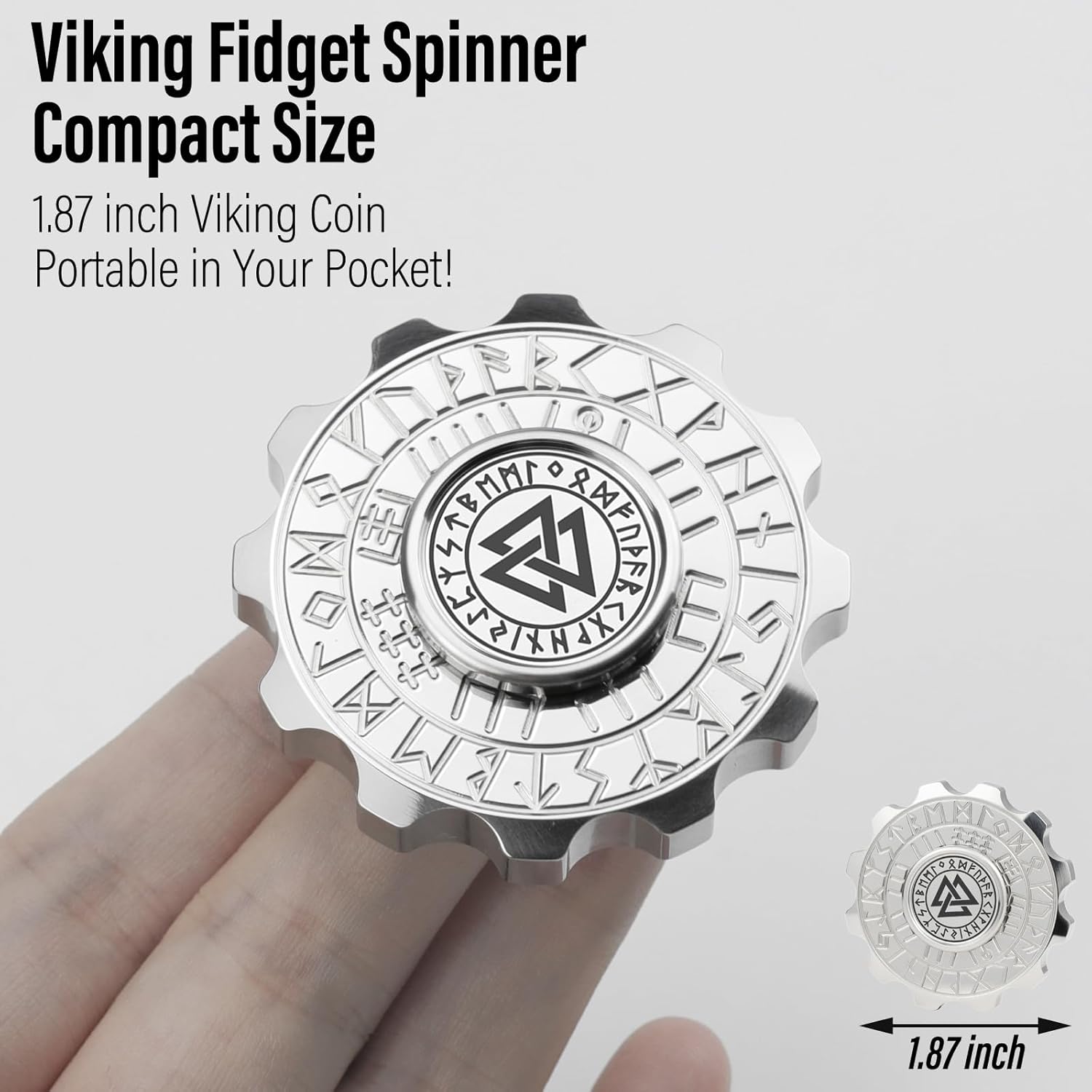 - [Good Looking] Viking Pirate Fidget Spinner design from Viking Pirate culture. Each side engravings with symbols or numbers, you could utilize it for memory practice, a random number generator, and something that could serve as a coin flip or dice roll outcome. Fingertips are cool lasered with mysterious symbols. It's visually appealing for sure.