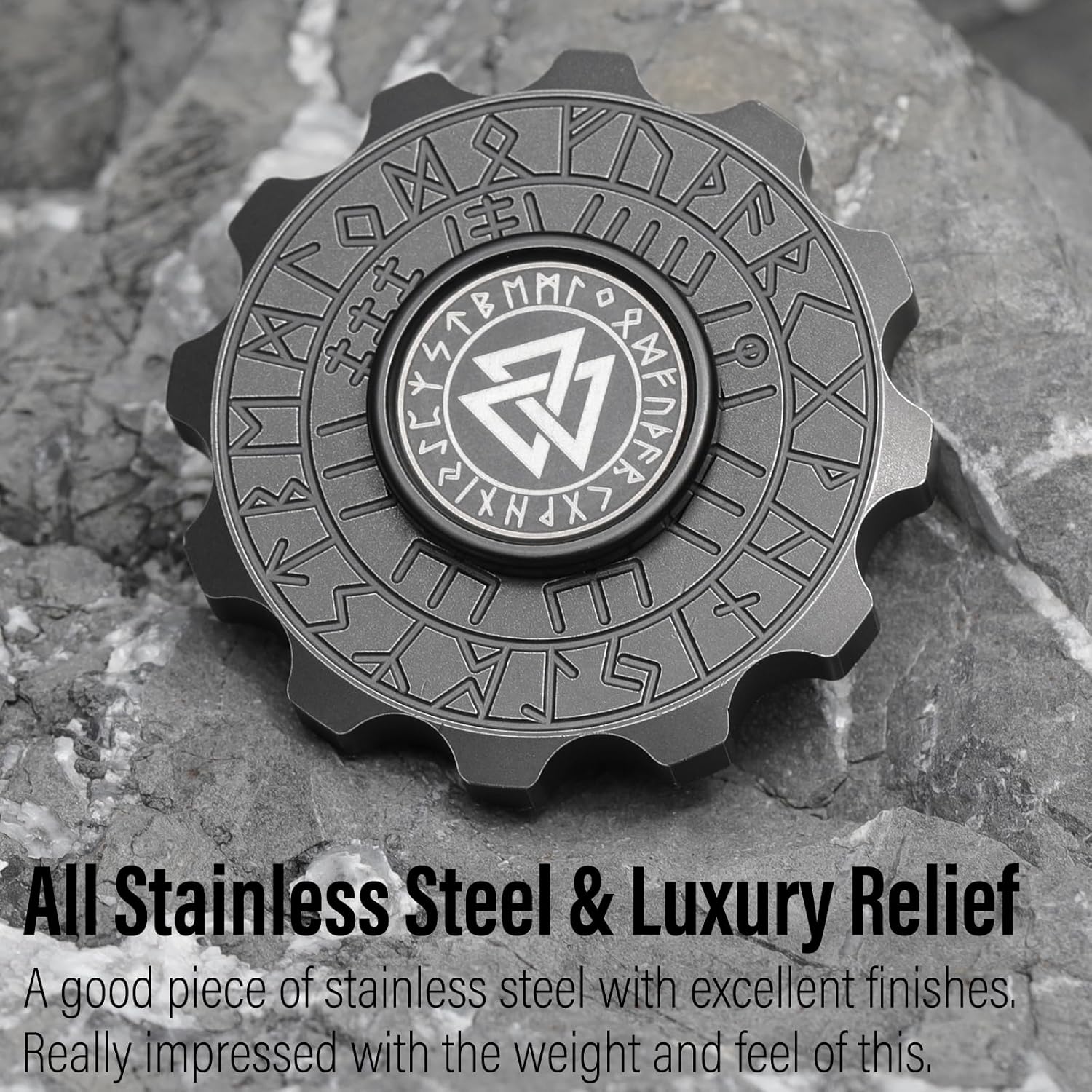 FREELOVE Metal Fidget Spinner, Viking Pirate Haptic Gyro, Heavy Stainless Steel Hand Spinning, Small Round Gear Fidget Block, Premium Bearing Silent Long Spinning for Adults Anxiety Cool, Black