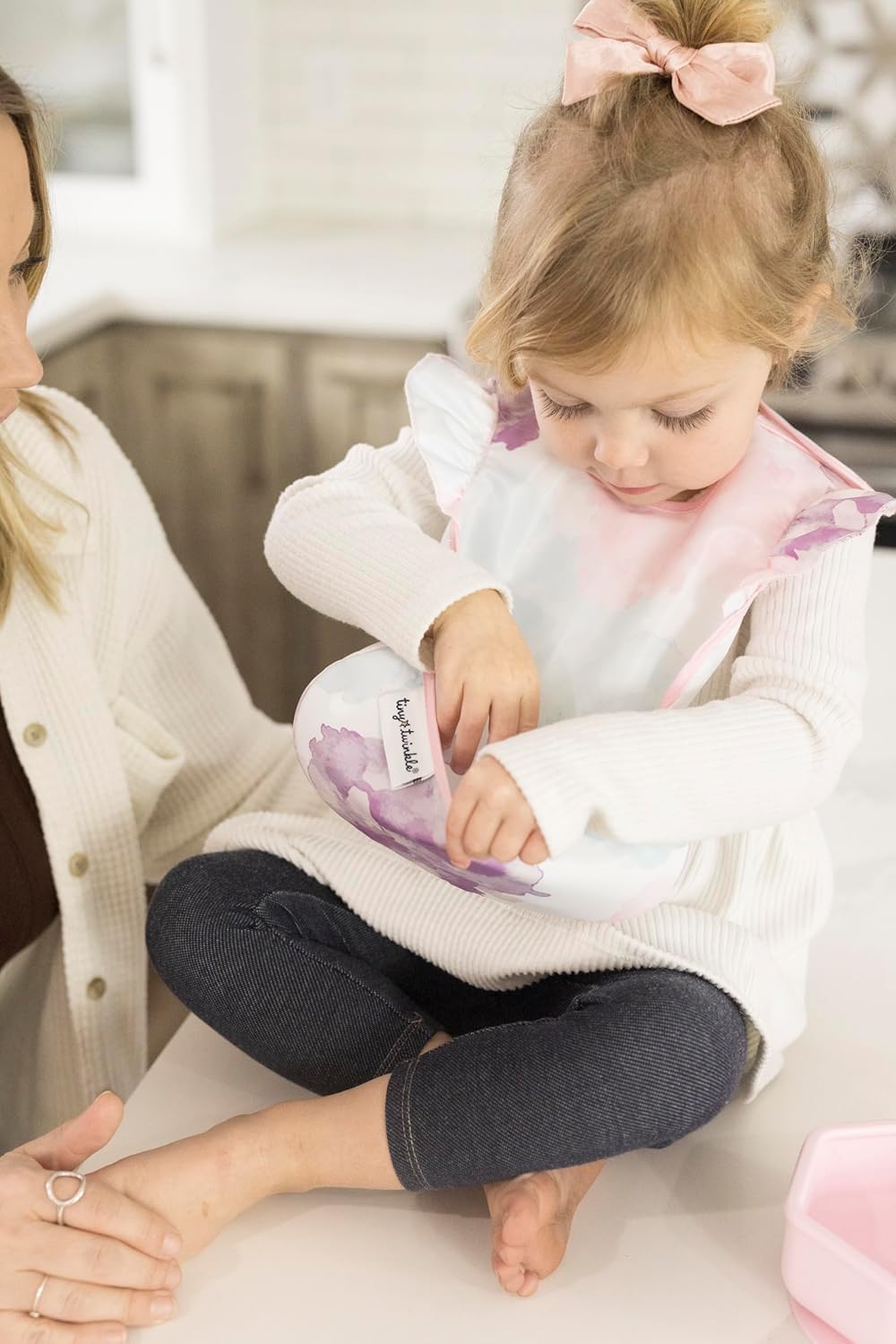 Tiny Twinkle Mess Proof Baby Bibs for Eating - Waterproof, Wipeable Bibs - Toddler Bibs - Travel Friendly - PFAS, PVC, BPA, Phthalate Free - Baby Food Bibs(3 Pack,Cotton Candy)