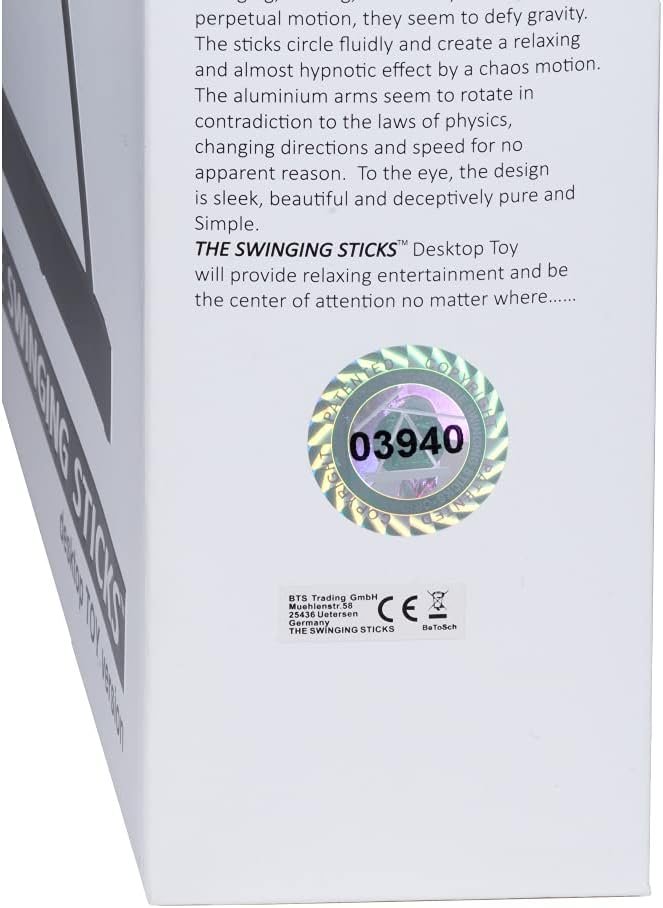 - SLEEK, SOPHISTICATED DESIGN: The Swinging Sticks Kinetic Energy Sculpture seemingly defies gravity as the double pendulum creates a fluid, relaxing rotation designed to change speeds and direction for no apparent reason. This high-quality, museum-style motion sculpture gives the illusion of perpetual motion designed to baffle and amaze all onlookers. Hand assembled by experienced engineers.