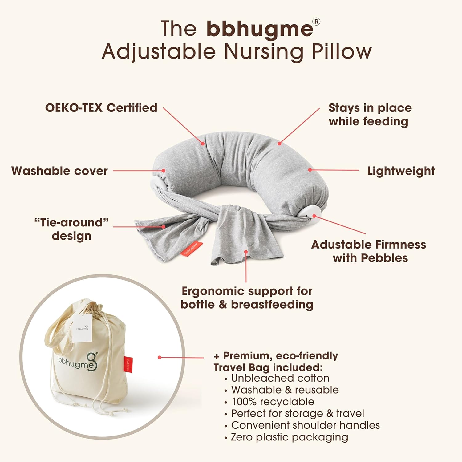 - DEVELOPED BY FEMALE HEALTH PROFESSIONALS — award winning adjustable bbhugme Nursing Pillow offers support to both you and your baby in critical areas such as the arm, neck and shoulders during breastfeeding or bottle feeding