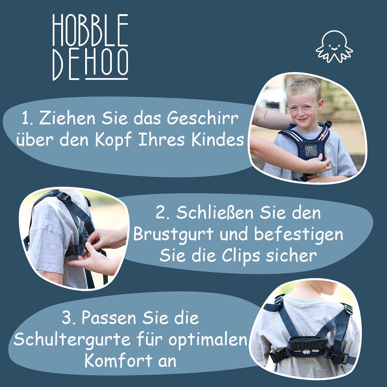 - Adjustable Child's Harness: This child safety harness can be tailored to fit various sizes, making it ideal for toddlers and kids aged 2-7. For older children, the Hobbledehoo XL is perfect for kids aged 7+, providing a secure fit as your child grows.