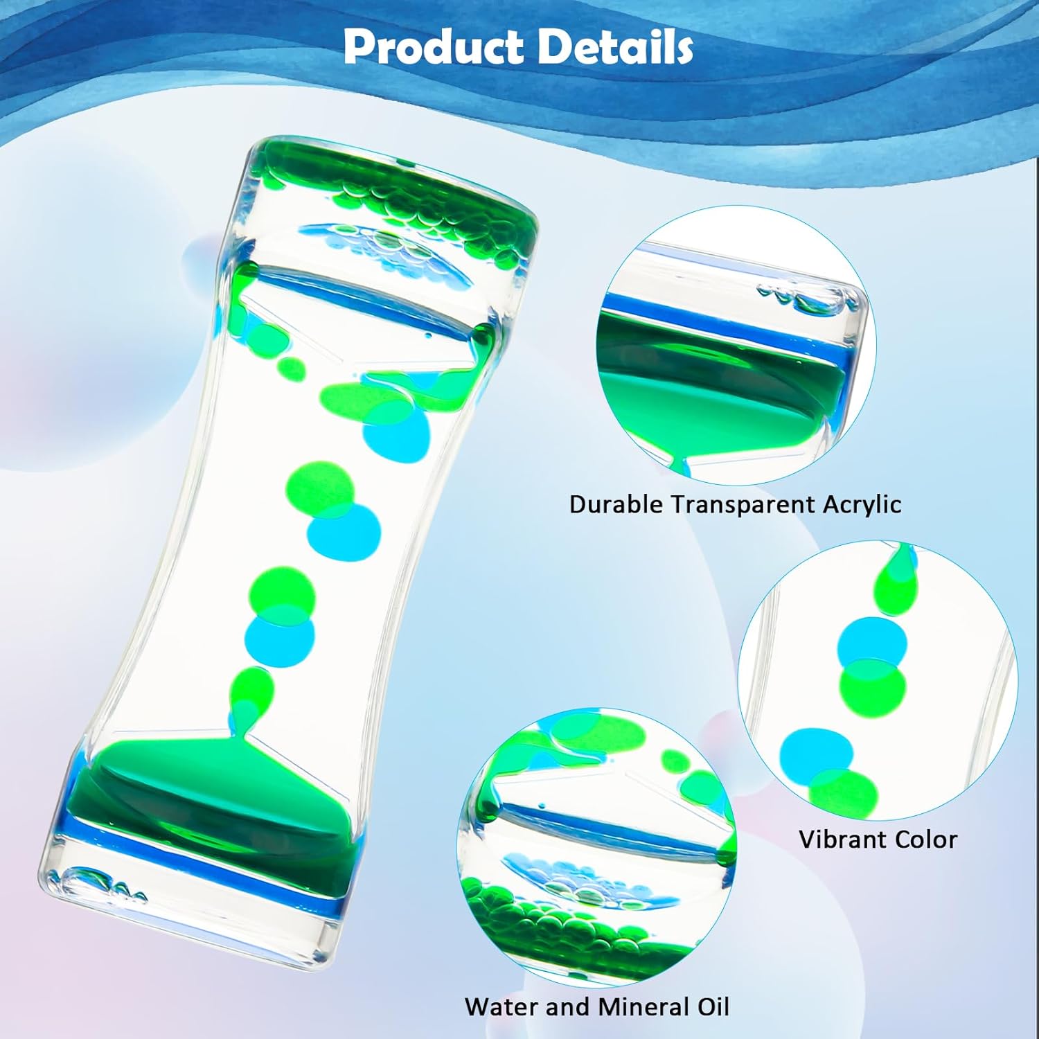 - Great Gift: Everyone will enjoy staring at this captivating liquid motion bubbler stress relief toys. Our liquid motion bubbler timer not only provide hours of fun for people, but also relieve adults stress.
