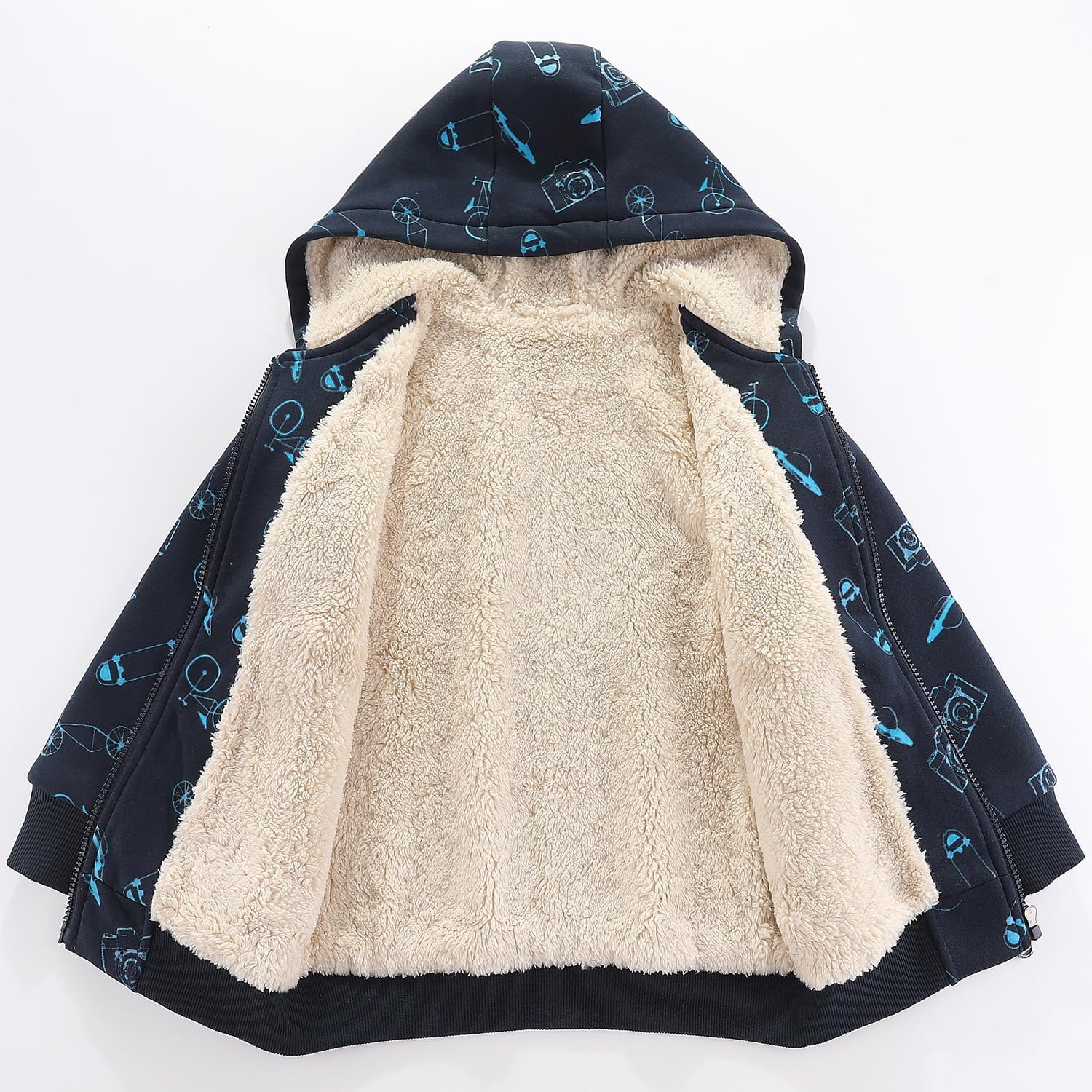 - Boy's hoodies are crafted from soft and breathable sweatshirt fabric,and they feature a plush FLEECE LINED cover that extends throughout the entire jacket. This includes the arms, back, front, and hood, ensuring that your child stays comfortably warm all day long.