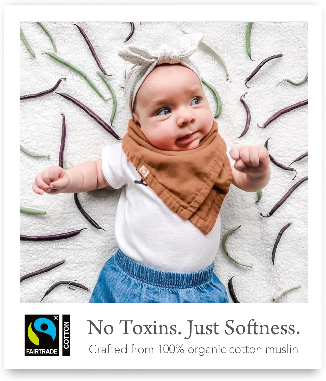 - πΏ PURE BLISS AGAINST BABY'S SKIN - Our Indi By Kishu Baby organic muslin bibs are crafted from Fairtrade certified, premium 100% organic cotton muslin, making them the perfect baby drool bibs. No cheap waffle patterns here! They're as soft as butter against your precious baby's sensitive skin. And the best part? We use non-toxic, safe inks that are better for the planet and better for your baby.