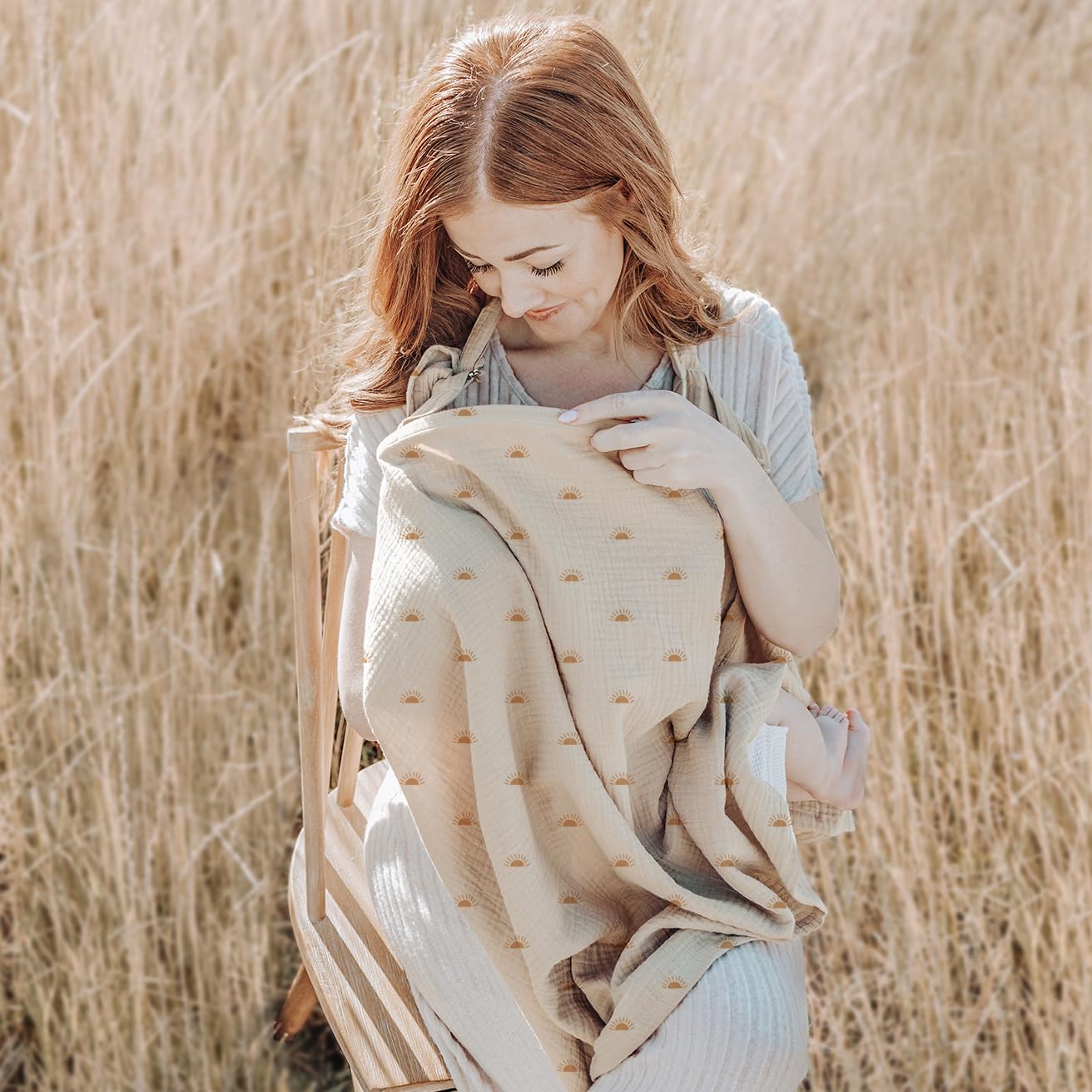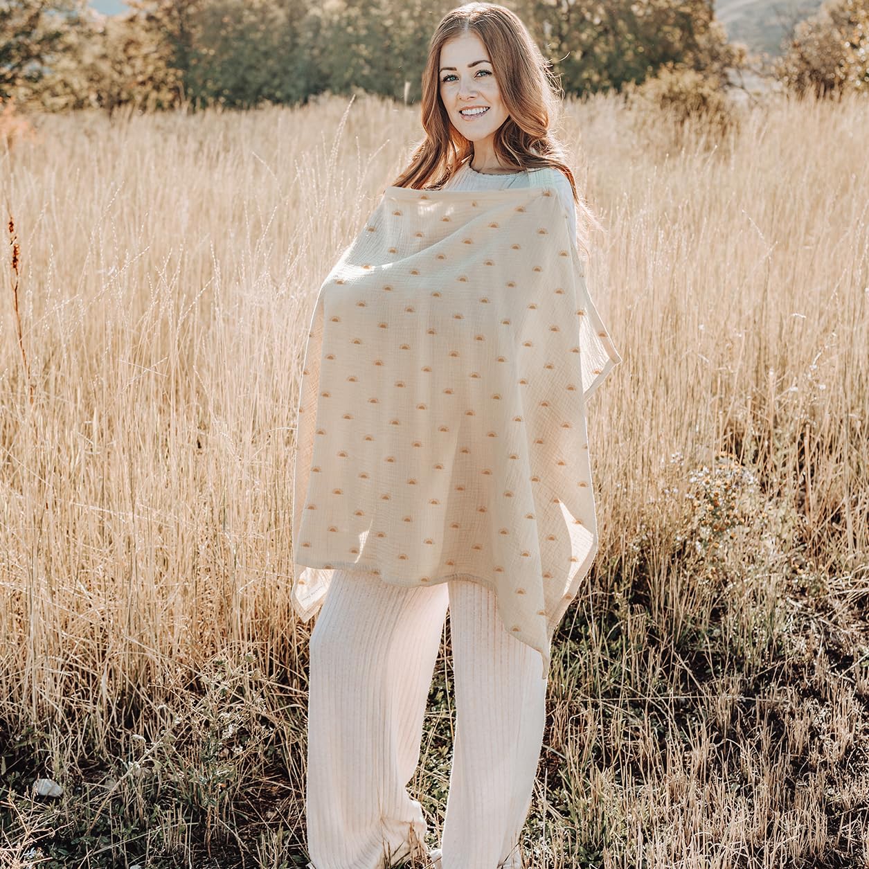 Konssy Muslin Nursing Cover for Baby Breastfeeding, Breathable 100% Cotton Breastfeeding Cover with Rigid Hoop for Mother Nursing Apron, Multi-use Carseat Canopy (Sun)