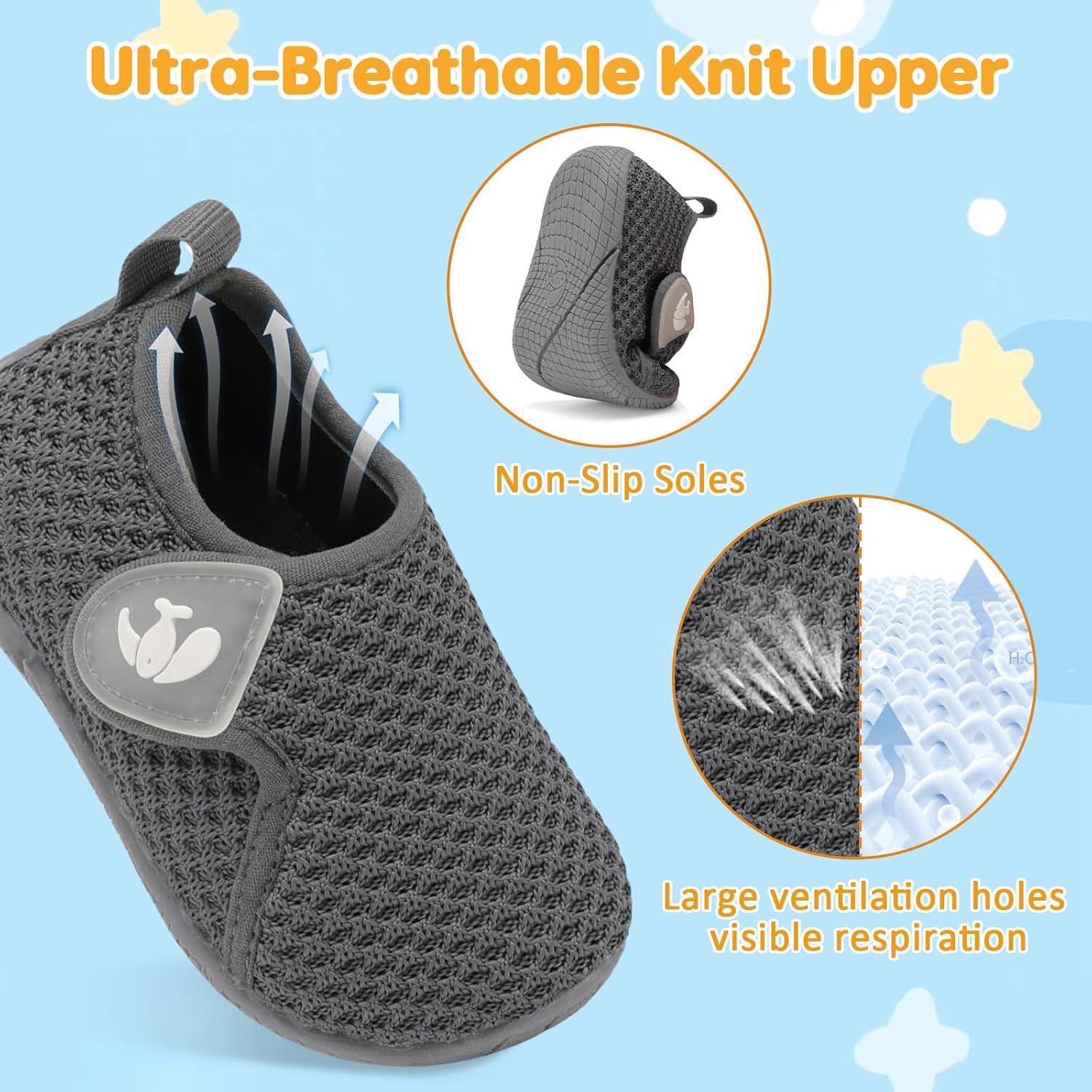 - Breathable and comfortable:Knitted Mesh Upper offers comfort and air permeability.Keep your child away from foot smelly.Also,high-quality upper provides good ductility to support children's active walking, running,and playing
