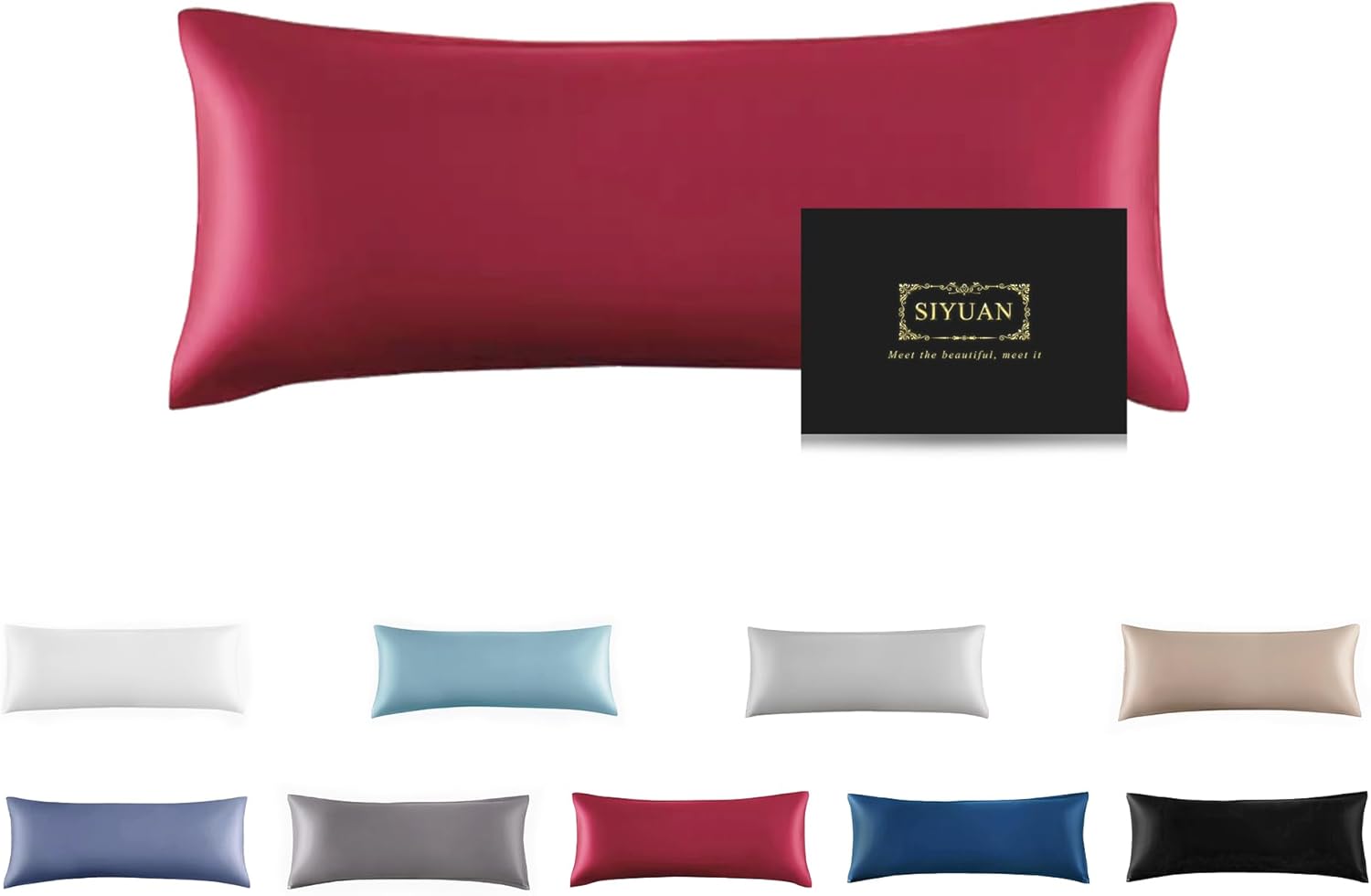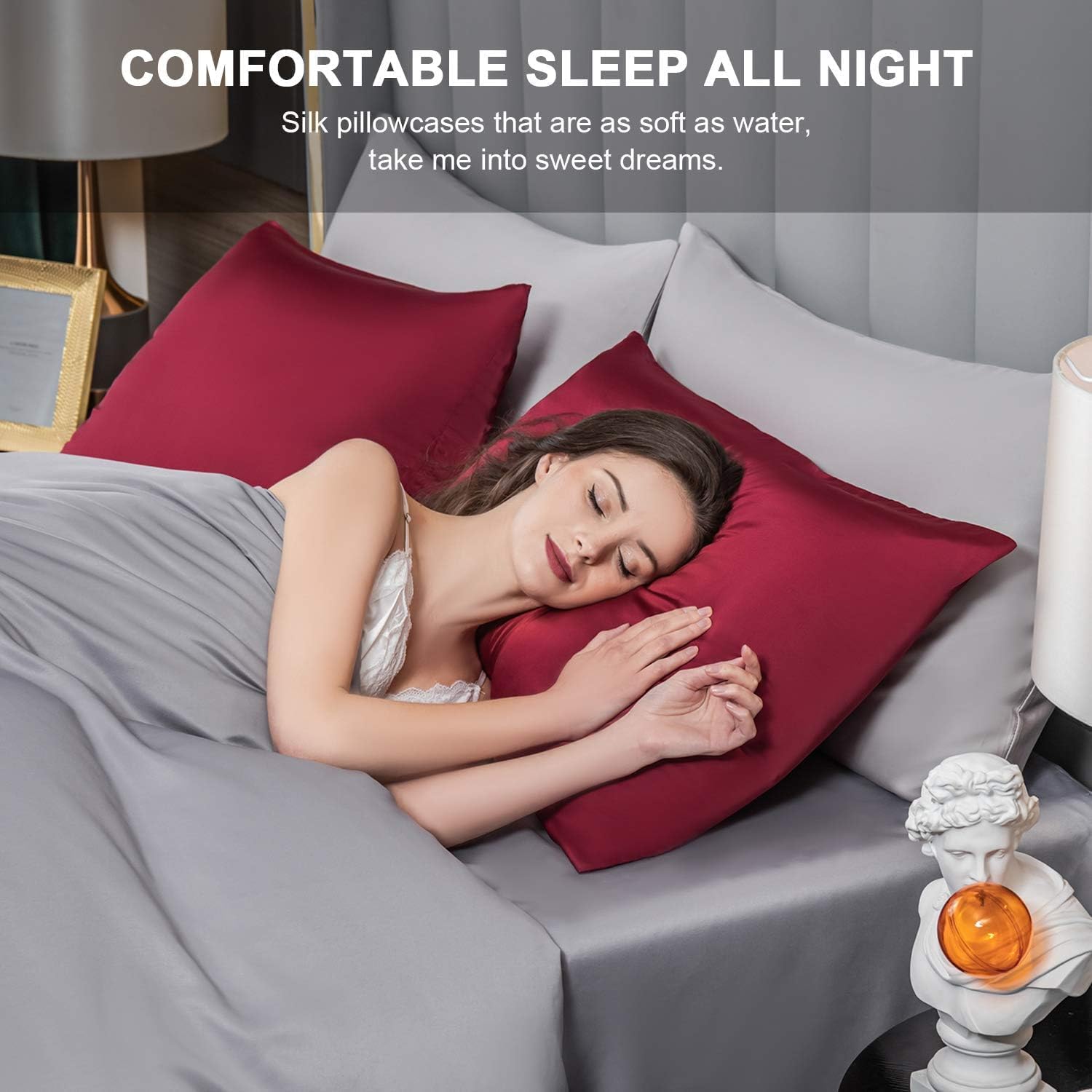 Mulberry Silk Pillowcase for Hair and Skin,Cooling Silk Pillow Case with Hidden Zipper,Allergen Proof Dual Sides Soft Breathable Smooth Silk Pillow Cover for Women (Dark Red, Body)