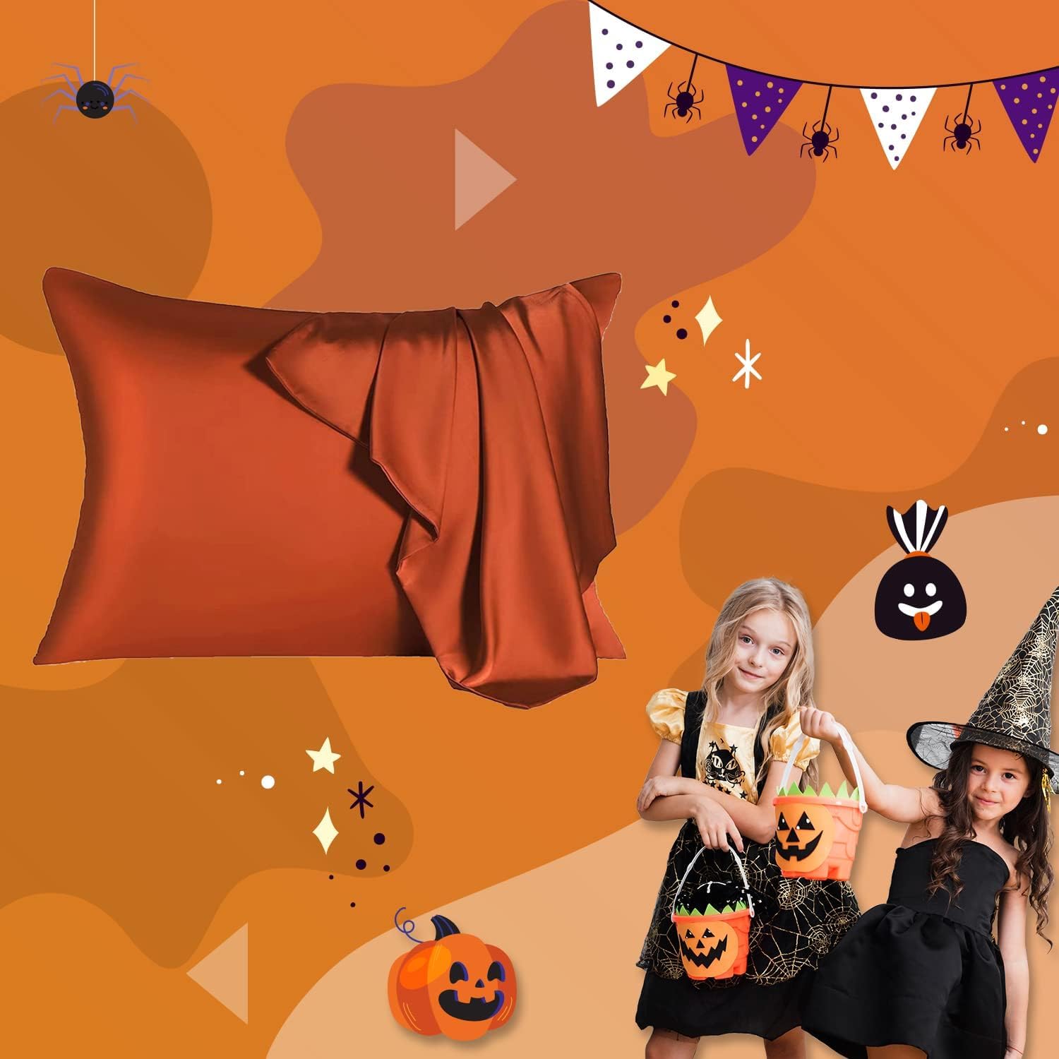 Mulberry Silk Pillowcase for Hair and Skin,Cooling Silk Pillow Case with Hidden Zipper,Allergen Proof Dual Sides Soft Breathable Smooth Silk Pillow Cover for Women (Orange, Toddler)