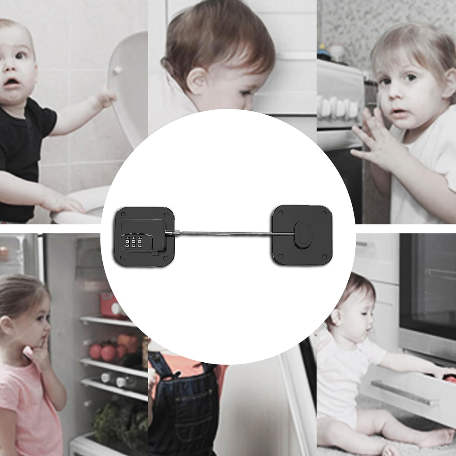 Refrigerator Lock (2 Pack), Heavy Duty Combination Fridge Lock, for Fridge, Cabinets, Window, Drawers and Child Safety Cabinet Locks, Strong Non-Marking Adhesive No Drilling (Black)