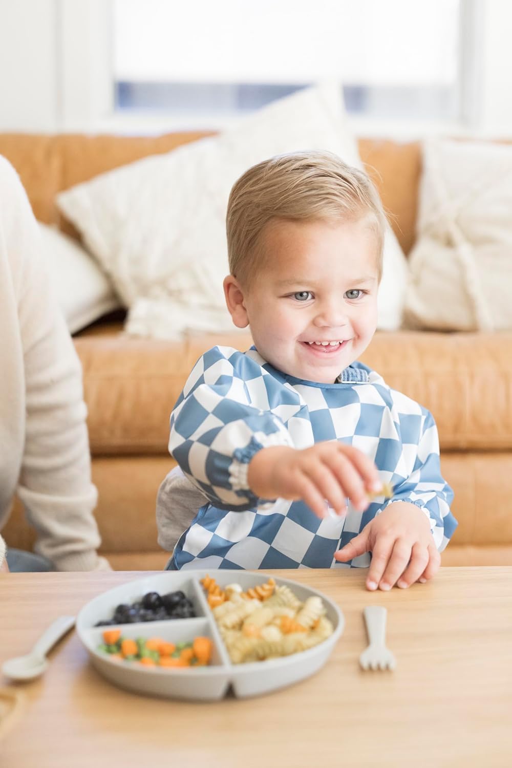 - TRAVEL BUDDY:The must-have baby feeding essentials for on-the-go parents! Our long sleeve waterproof smock bib (fits 6-24 months) is a versatile wipeable bibs with scratch-free closures and 360 degrees puree-proof protection.This bib with sleeves is perfect for plane or car meals, It folds flat in diaper bags,handles baby-led weaning messes and makes a great gender-neutral baby shower gift.Ideal for parents needing baby eating essentials on the go.