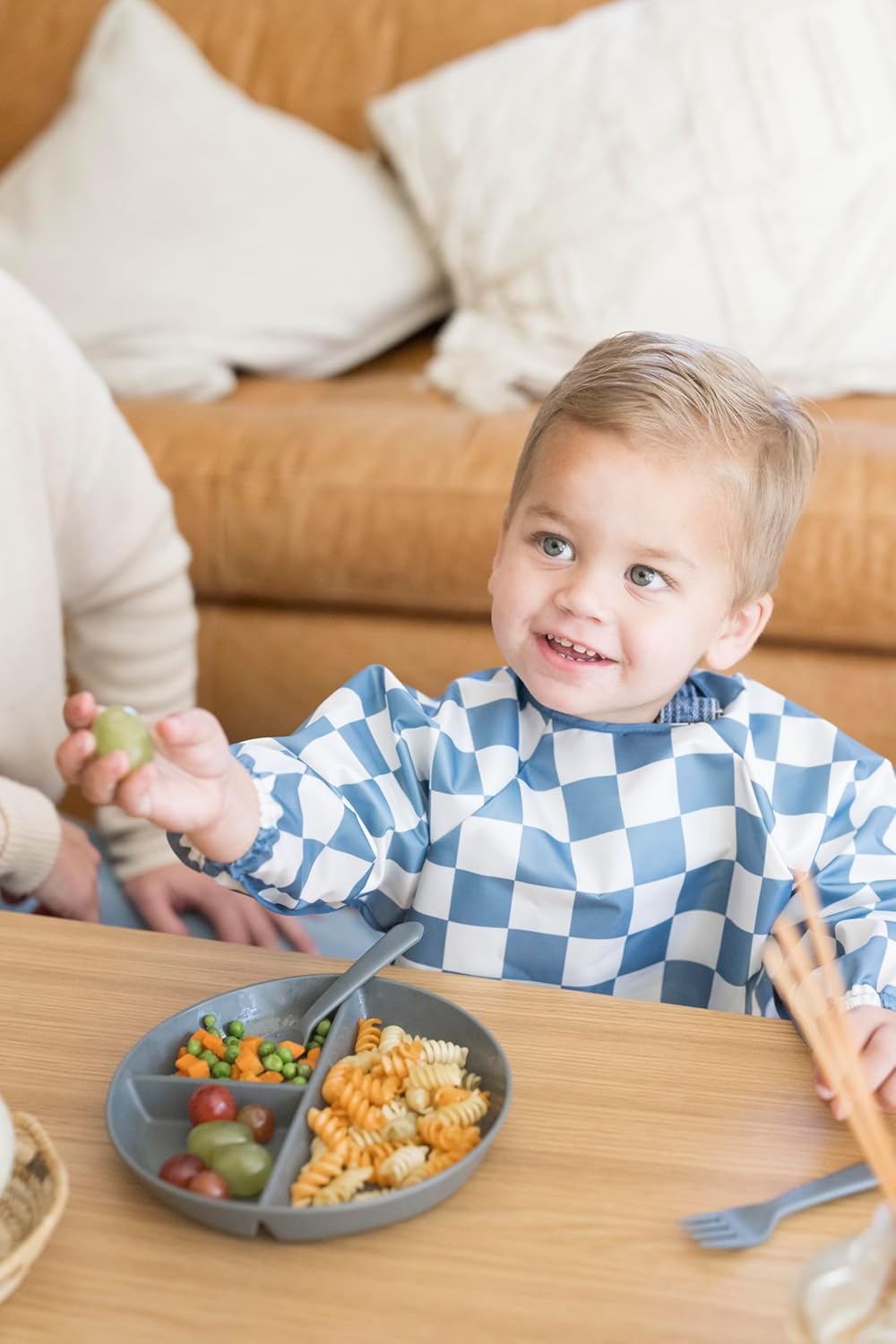 Tiny Twinkle Mess Proof Baby Bib,Waterproof Smock Baby Bib for Eating,Machine Washable Long Sleeve Bib,Baby Led Weaning,Toddler Bib (Checkers Blue, Small 6-24 Months)