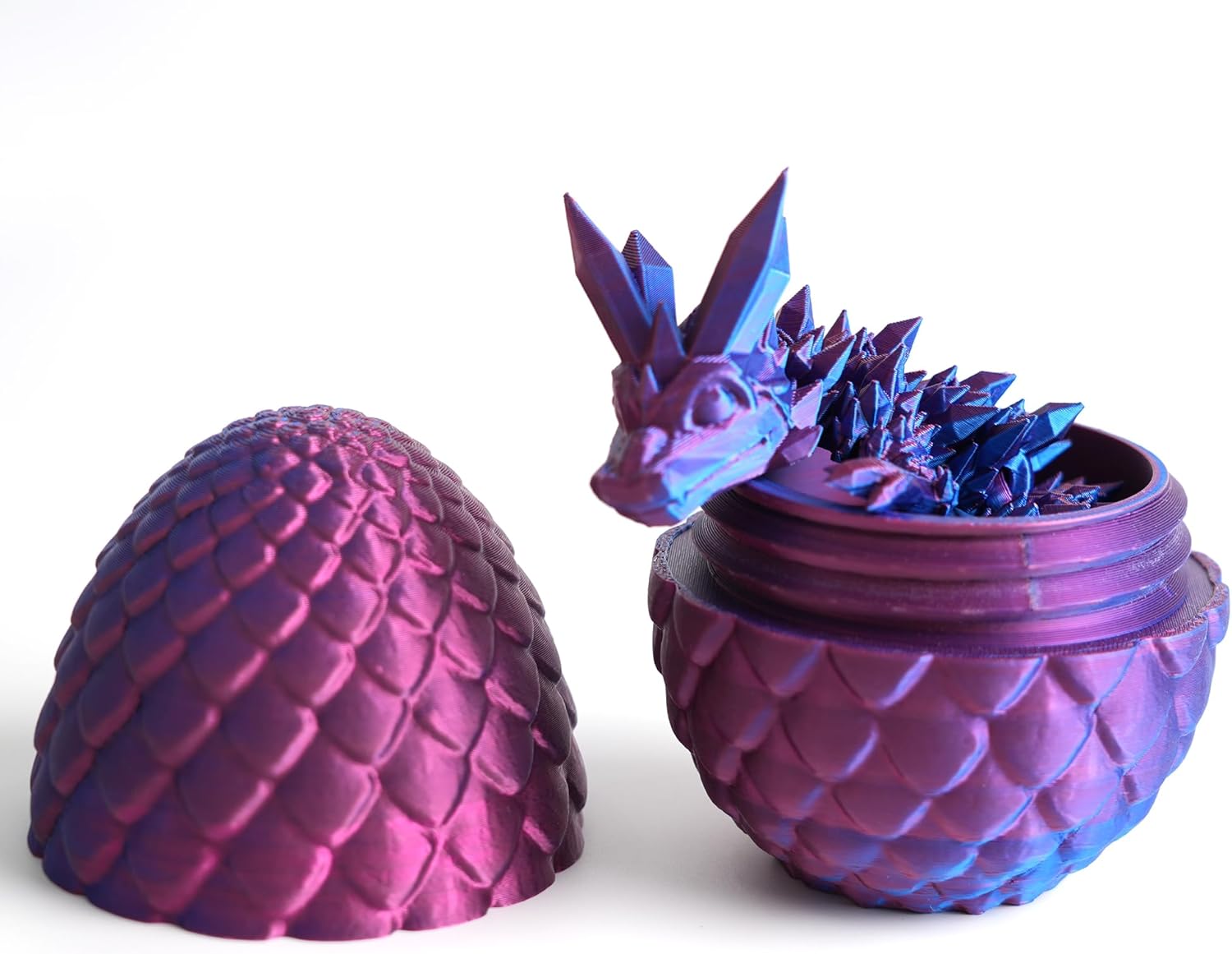 Dragon Egg - Surprise Egg with 8” Flexible Dragon Inside, 3D Printed Gift, Easter Egg, Articulated Dragon Toy for Birthday, Home Decor
