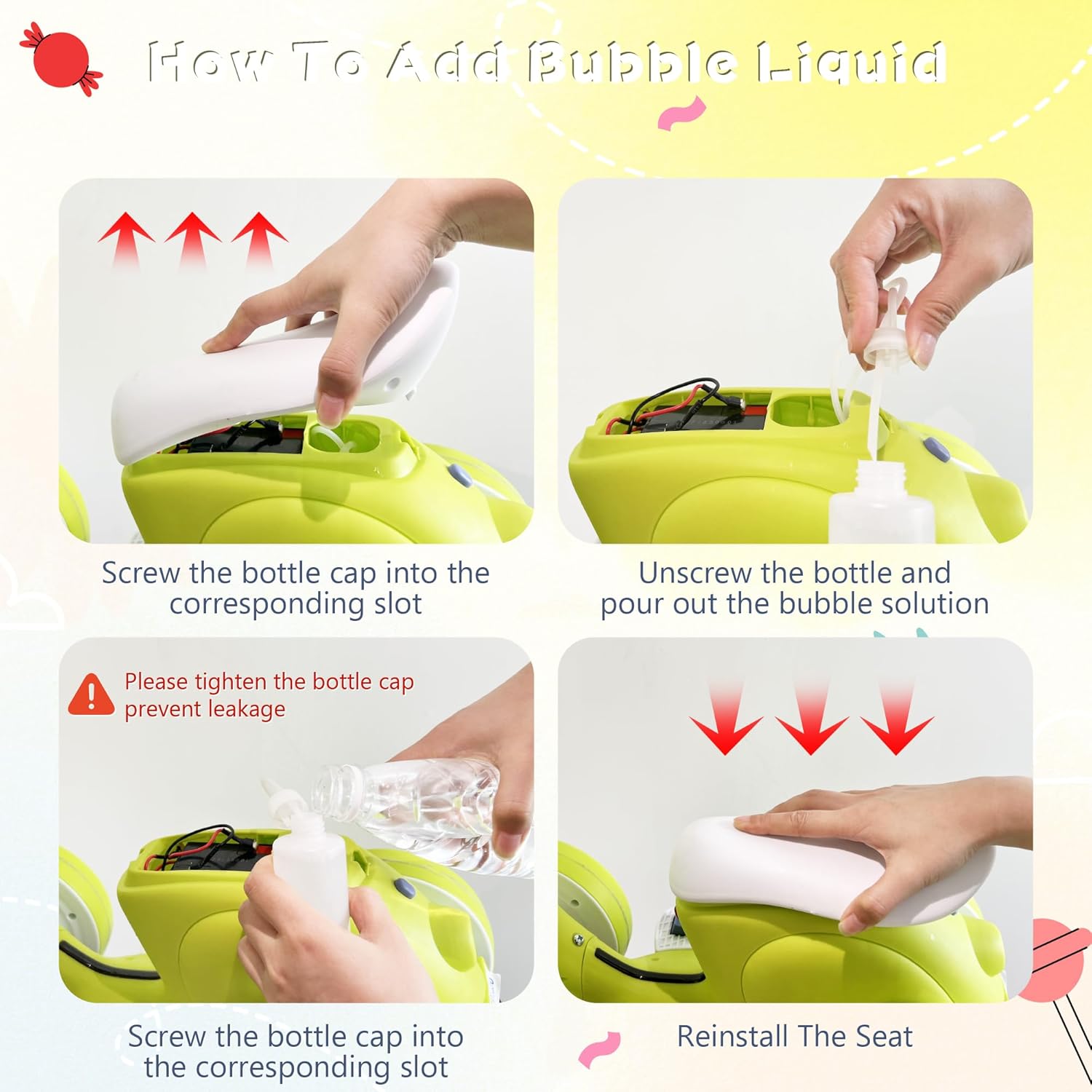 - Easy Installation:The toddler electric bubble bike ride-on is designed with a modular structure, eliminating the need for extra tools during installation. We provide an installation manual in the box to guide you through the process. Kids will quickly enjoy their first balancing toddler car, which helps develop their balance, allows them to enjoy riding, and boosts their confidence.