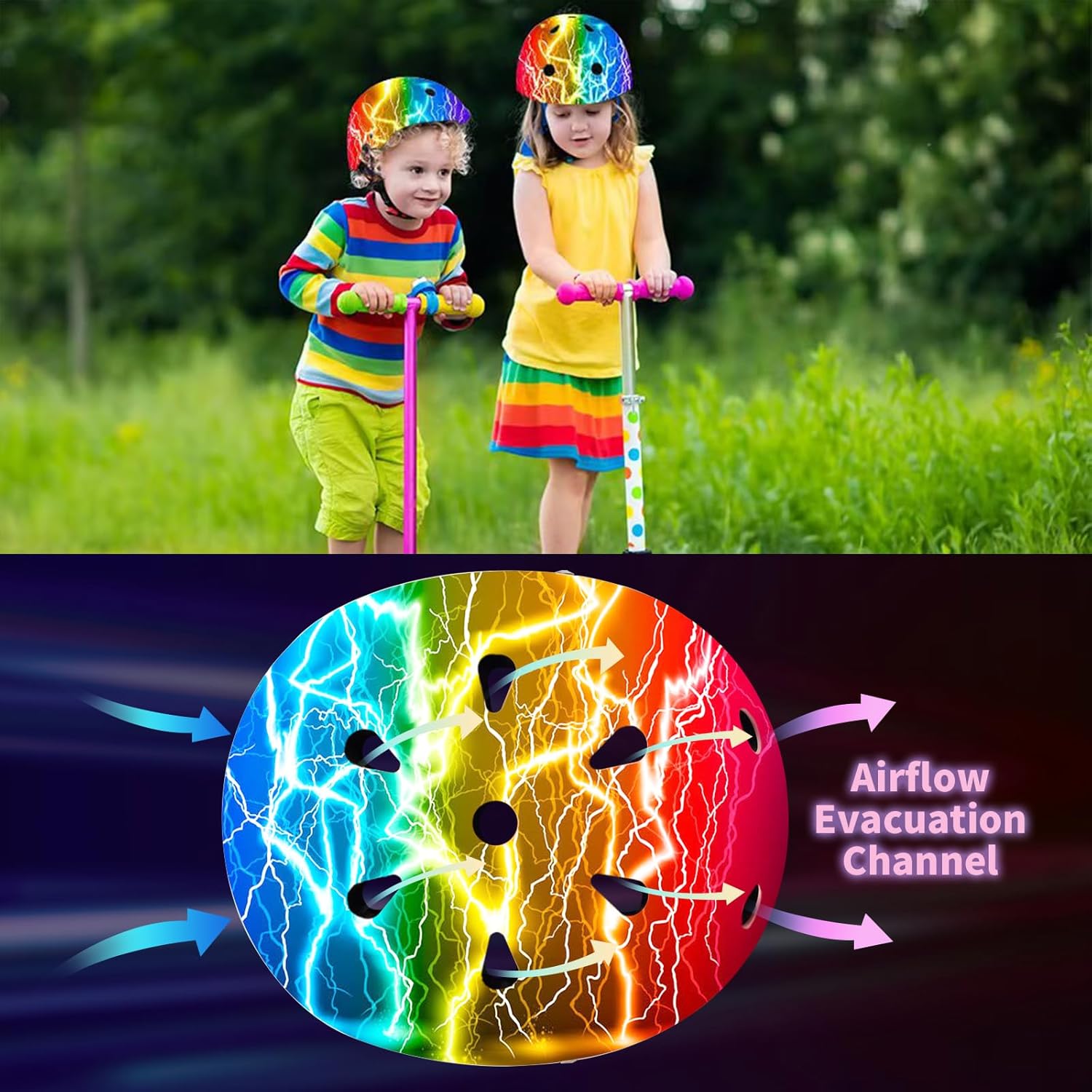 Adjustable Kids Bike Helmet with Knee & Elbow Pads Set, Color Gradient Design for Boys and Girls Aged 3-14+, for Skateboarding, Scooter, Roller & Inline Skating, Longboard