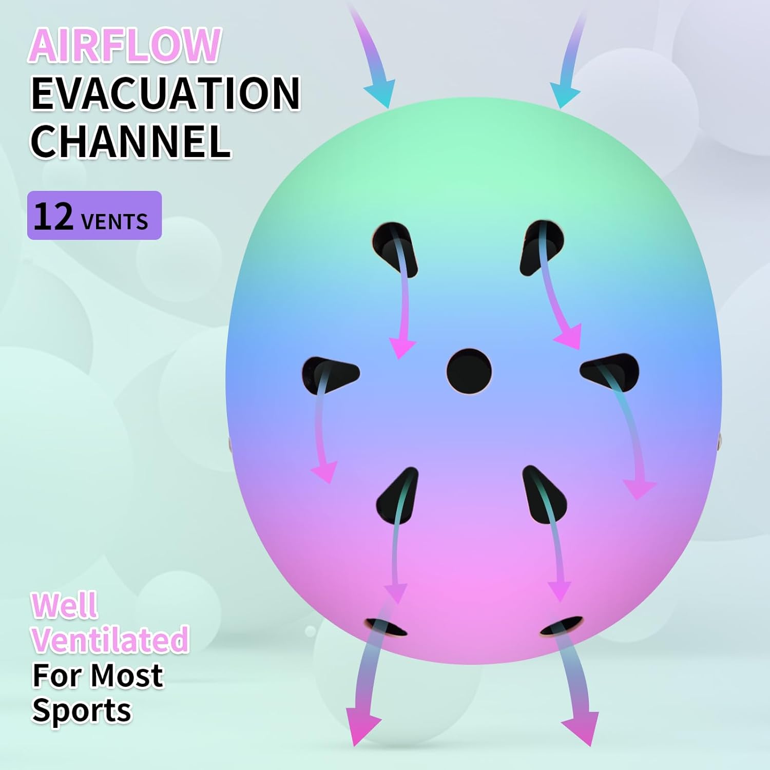 Adjustable Kids Bike Helmet with Knee & Elbow Pads Set, Color Gradient Design for Boys and Girls Aged 3-14+, for Skateboarding, Scooter, Roller & Inline Skating, Longboard