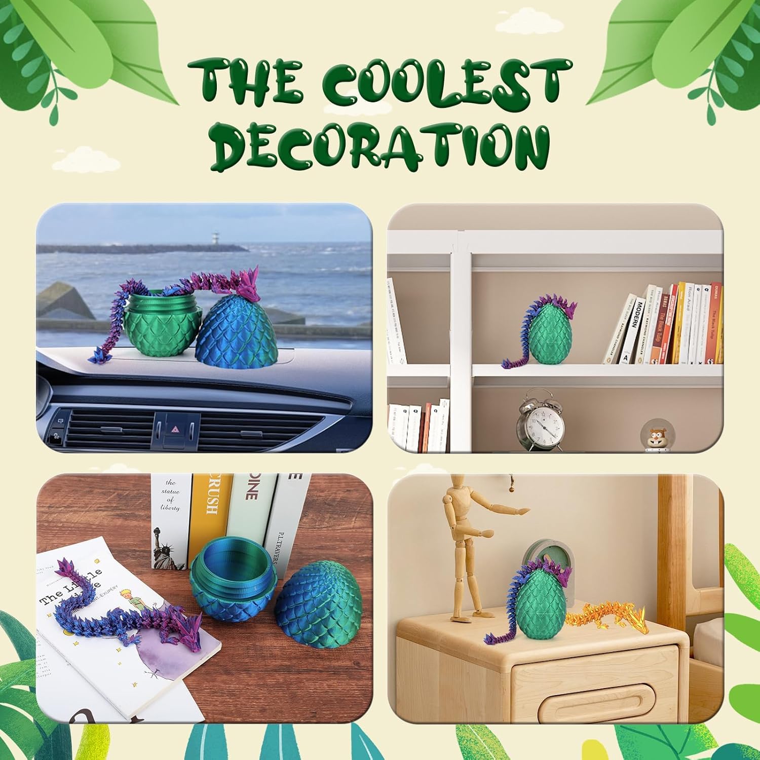 - Realistic Design】The 3D printed dragon has perfect details, realistic design, each part is connected by a strong chain and you can fiddle with it to make it present your favourite look