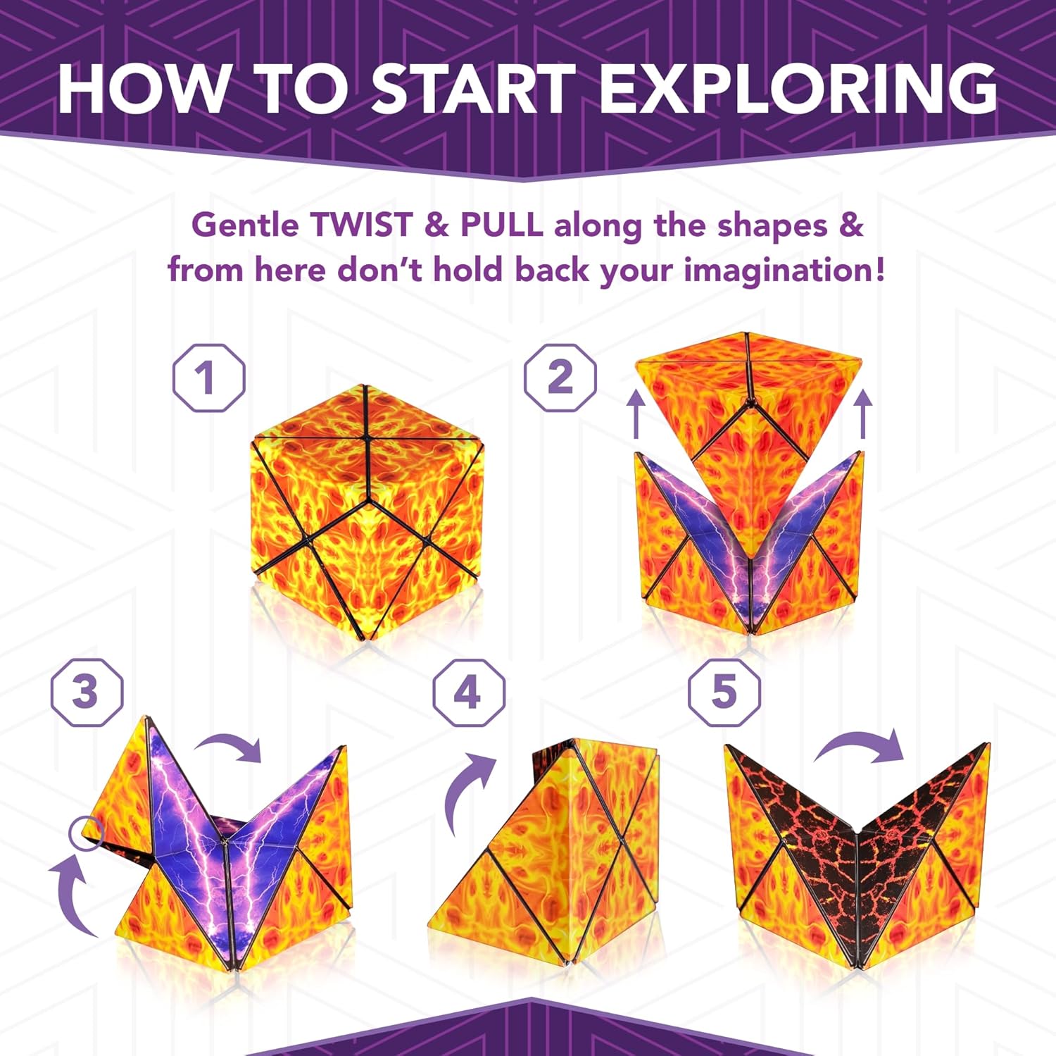 - 🇺🇲 Stimulation For Your Senses - At Fun In Motion Toys, your happiness is our #1 goal! We create brain development toys to actively stimulate your mind, body & imagination. Designed in the USA, our amazing puzzle brings people together for hours of fun and excitement. Just like the Shashibo shape shifting box and Cubendi cube, If you need help with your Duomoto Magnetic Transforming Cube our Happiness Engineers are standing by!