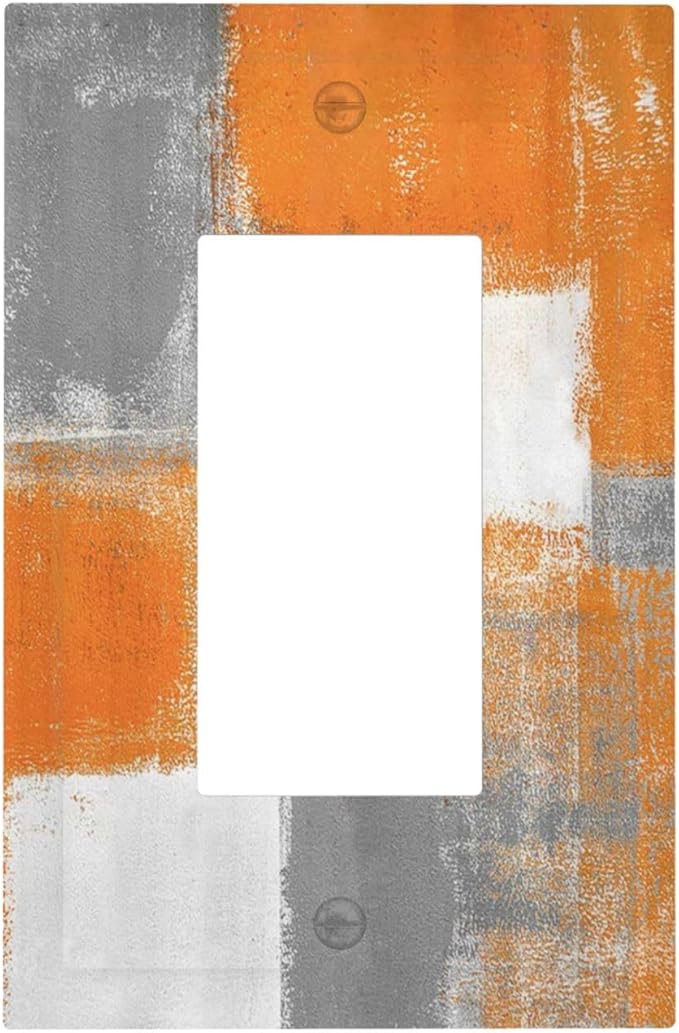 1 Gang Single GFCI/Decorator Rocker Outlet Light Switch Wall Plate Cover Rustic Burnt Gray Orange Grey Beige Geometric Abstract Art Oil Paint Grunge Decorative One Device Electrical Faceplate Dimmer
