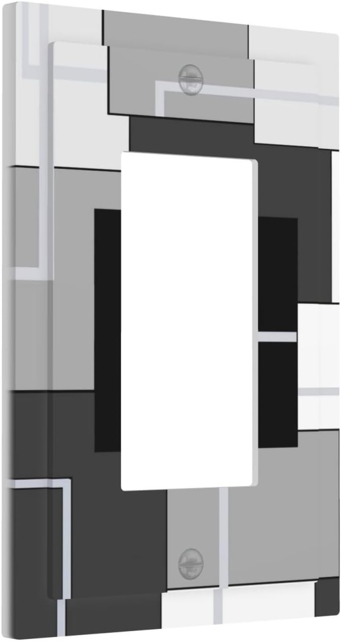 1 Gang Single GFCI/Decorator Rocker Outlet Light Switch Wall Plate Cover Modern Mid Century Aesthetics Abstract Geometric Black and White Grey Gray Decorative One Device Electrical Faceplate Dimmer