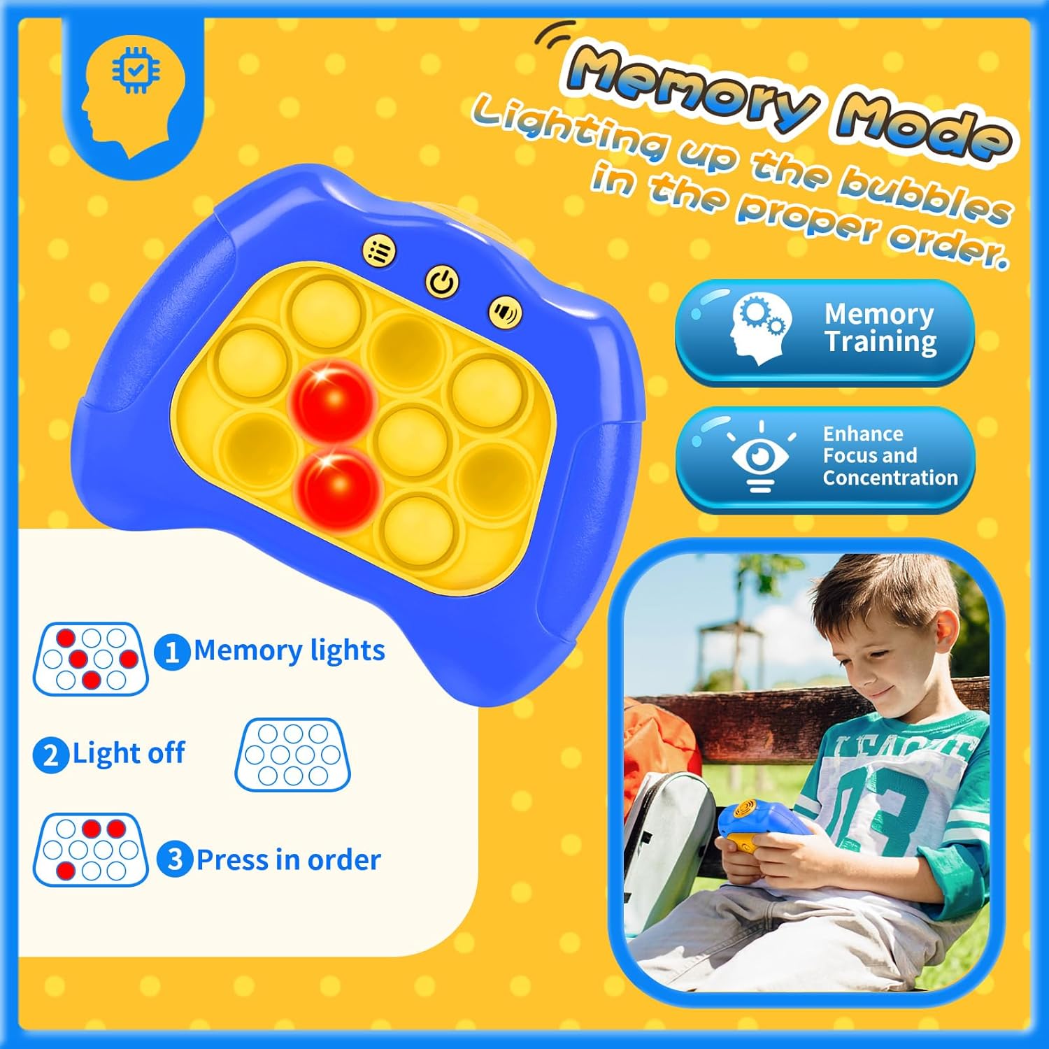 - LIGHT-UP POP FIDGET TOY: Classic pop game meets electronic handheld game! Our newly released quick push bubble game can promote kids sensory development, and engage their positive thinking, hand-eye coordination, and brain training during playing