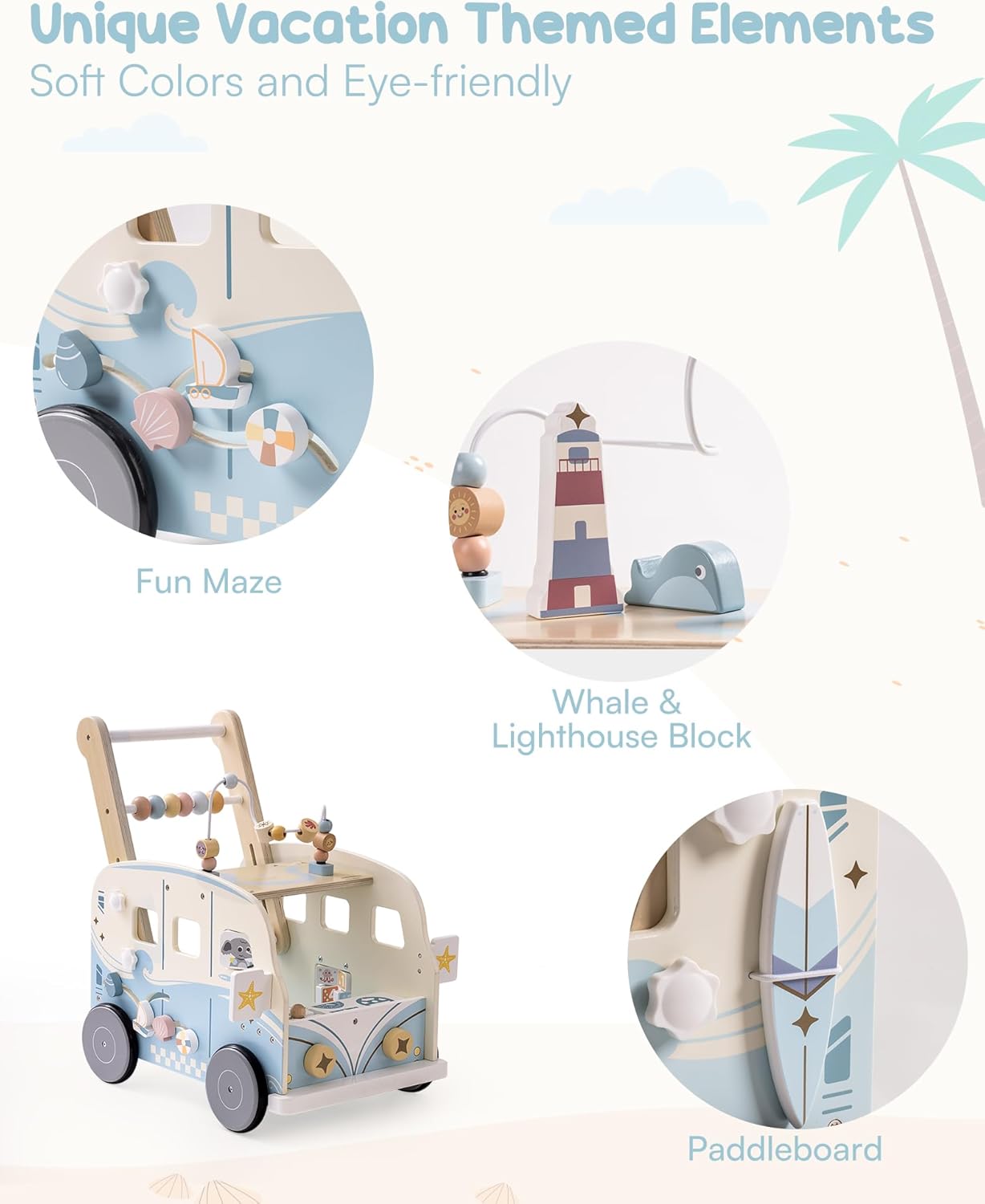 - Adventurous Vacation Bus Walker--- Embark on a whimsical journey with our delightful Vacation Bus walker! Inspired by the joy of holiday adventures, this walker features playful whale and lighthouse-themed blocks that add a touch of magic to playtime. With its adorable rearview mirror and lifelike gear lever, it ignites imagination and sparks creativity in every young explorer.