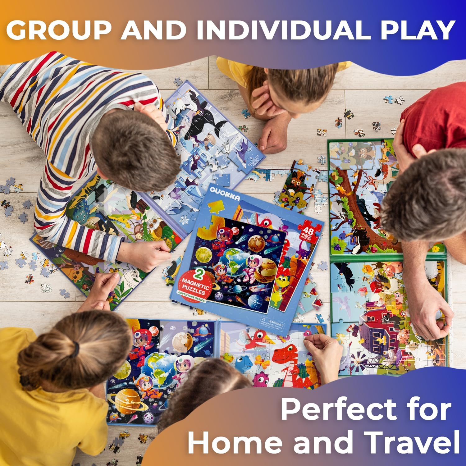 QUOKKA Magnetic Puzzles for Toddlers 4-6 - 2x48 Travel Puzzle Games for Kids Ages 3-5 Years Old - Dinosaur Car Activities Toy for Boys and Girls 2-4 yo - Space Learning Magnet for Road Trip