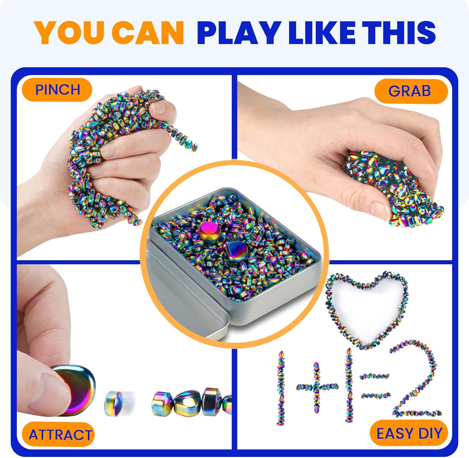 - IF THE IRON BOX IS DEFECTIVE, PLEASE TELL US AND WE WILL REPLACE IT FOR YOU. ENJOYABLE DESK TOY: LECTRUS magnet balls have 2 large rainbow magnets and a bunch of irregular small magnetic balls. They have a smooth surface, are attracted to each other, and are cool to the touch, like putty. When you are irritable or bored at work, simply hold, shape, or stack these on your desk for endless entertainment.