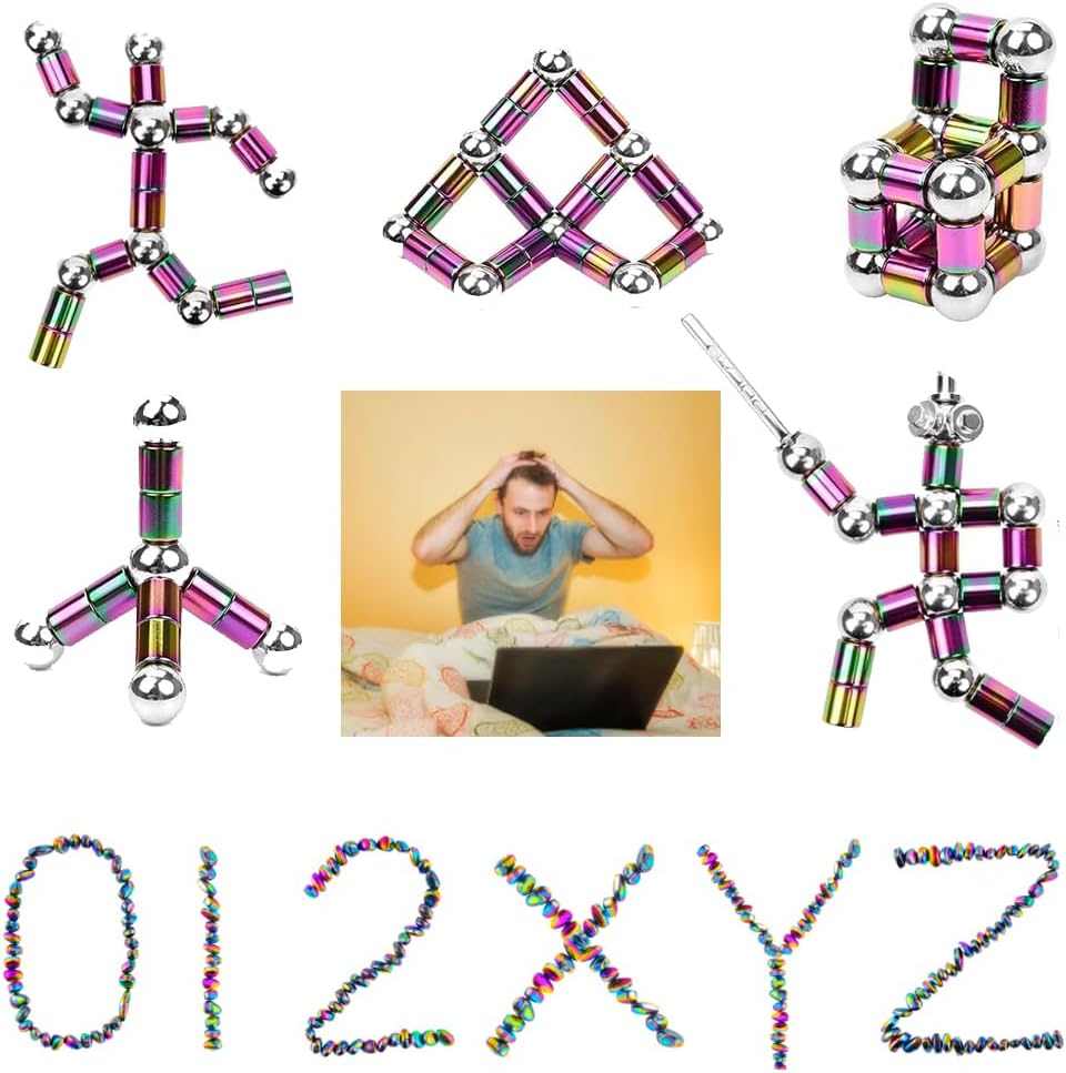 - 【Portable Fidget Toy】rainbow magnetic balls and fidgets pen can Take it with you for Adults Anxiety Relief. Whether in your bedroom, desk, travel road, or outdoor beach, you can play. The perfect stress-relieving toy for mental workers. These fidget toys set and get your creative flowing, free combination, multiple and diverse plays.