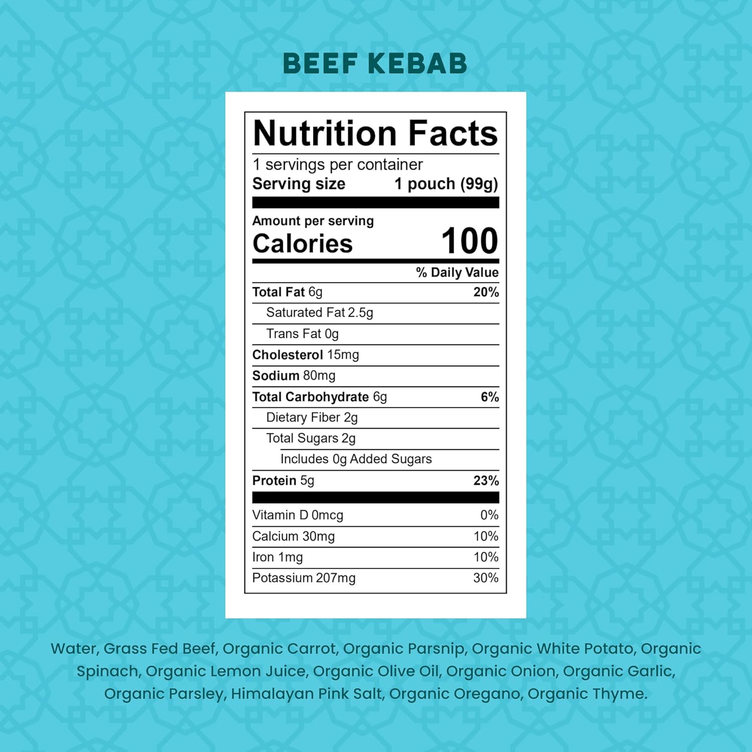 Serenity Kids 7+ Months World Explorers Beef Kebab Baby Food Pouches - Grass-Fed Beef & Organic Veggies - BPA-Free Baby Snack - Ages 7+ Months - 3.5 Oz 6 Pack