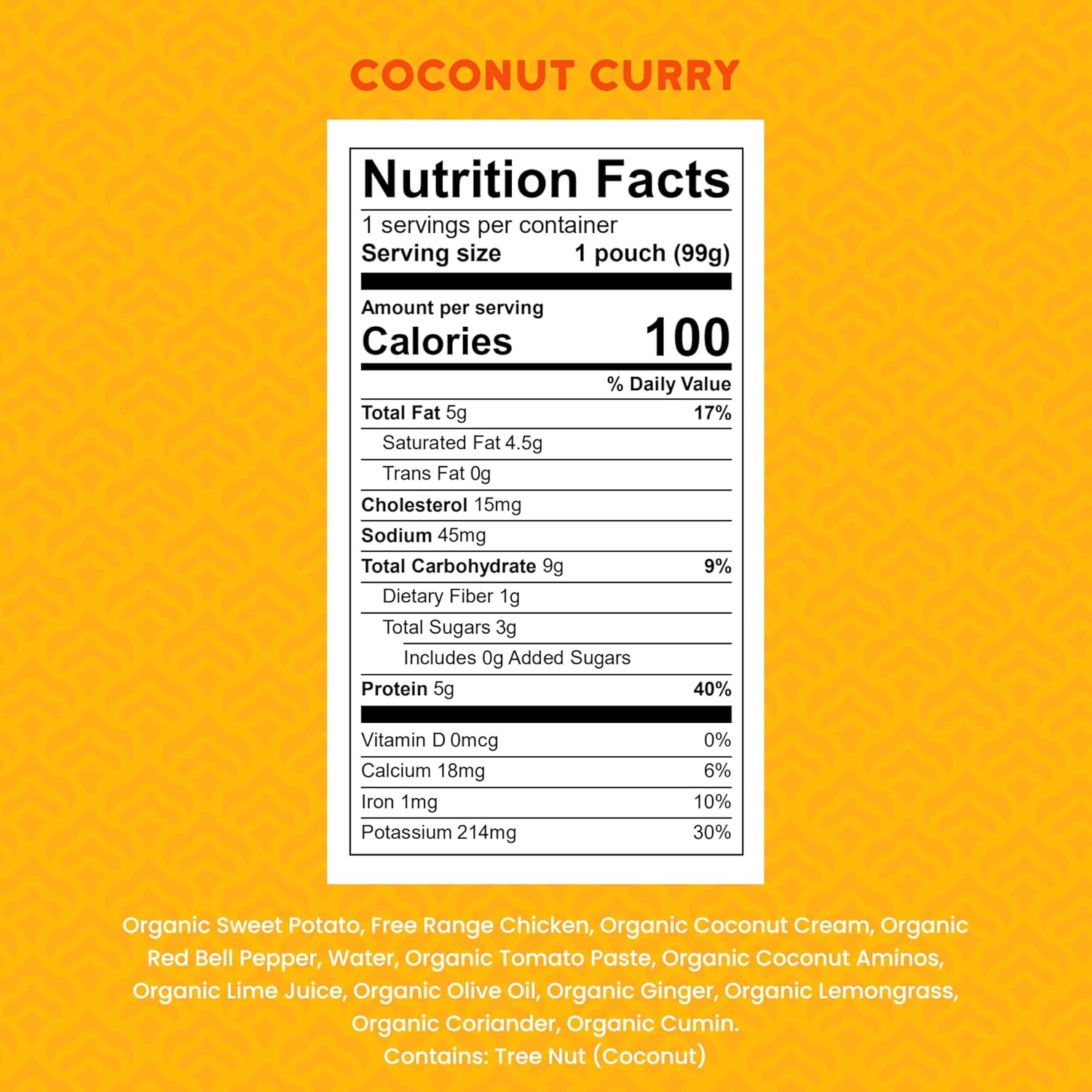 - Crafted With Care: Our coconut curry chicken serenity kids is designed to mimic the nutrients of breast milk, using free-range chicken, organic veggies, and zero artificial flavors. Perfect coconut curry chicken pouch for your 6-month-old baby and beyond