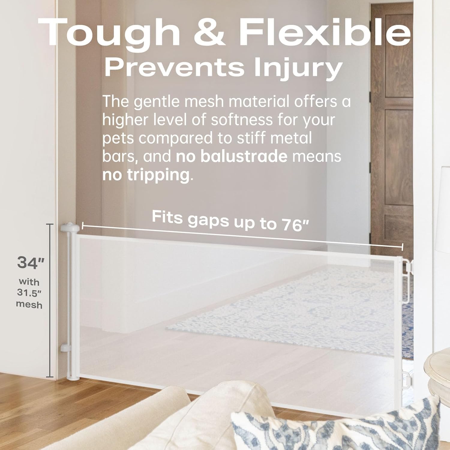 Cumbor 76" Wide Long Retractable Baby Gates for Stairs, Mesh Dog Gate for The House, 34" Tall Extra Wide Pet Gate for Dogs, Child Safety Gates for Doorways, Hallways, Cat Gate Indoor/Outdoor(White)